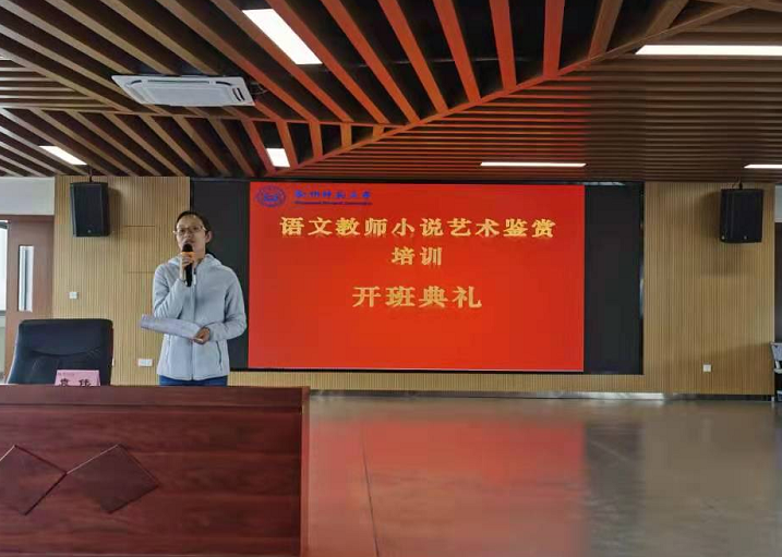 典礼结束后,培训正式开始,杭州师范大学教授、浙江省之江青年社科学者团队负责人詹玲专家以题为《小说的真实与虚构》的讲座开启了此次学习之旅。詹老师围绕小说的真实原则与虚构本质,强调在对小说的鉴赏与教学中,在认知的基础上引领学生去领略小说中所传达的丰富情感,并通过小说中的某一段落帮助老师们感悟小说的真实性与虚构性,对如何进行鉴赏教学提出了合理的建议。引导教师去理解小说的逻辑力与想象力,在艺术欣赏中感悟文学、陶冶情操。
