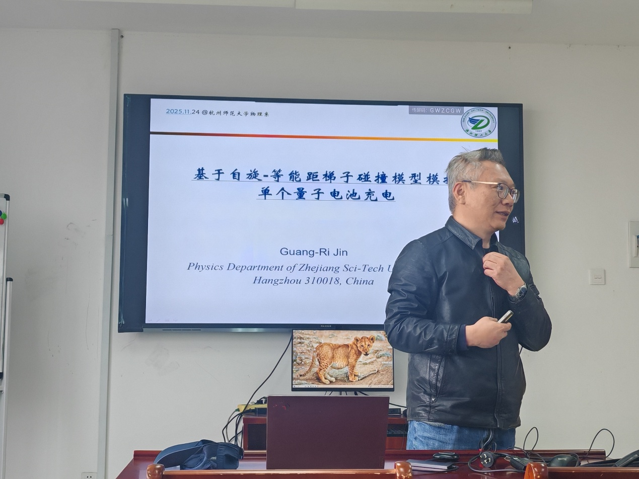 11月24日上午,浙江理工大学金光日教授为色花堂 师生带来了题为基于“自旋-等能距梯子碰撞模型模拟单个量子电池充电”的专题报告。