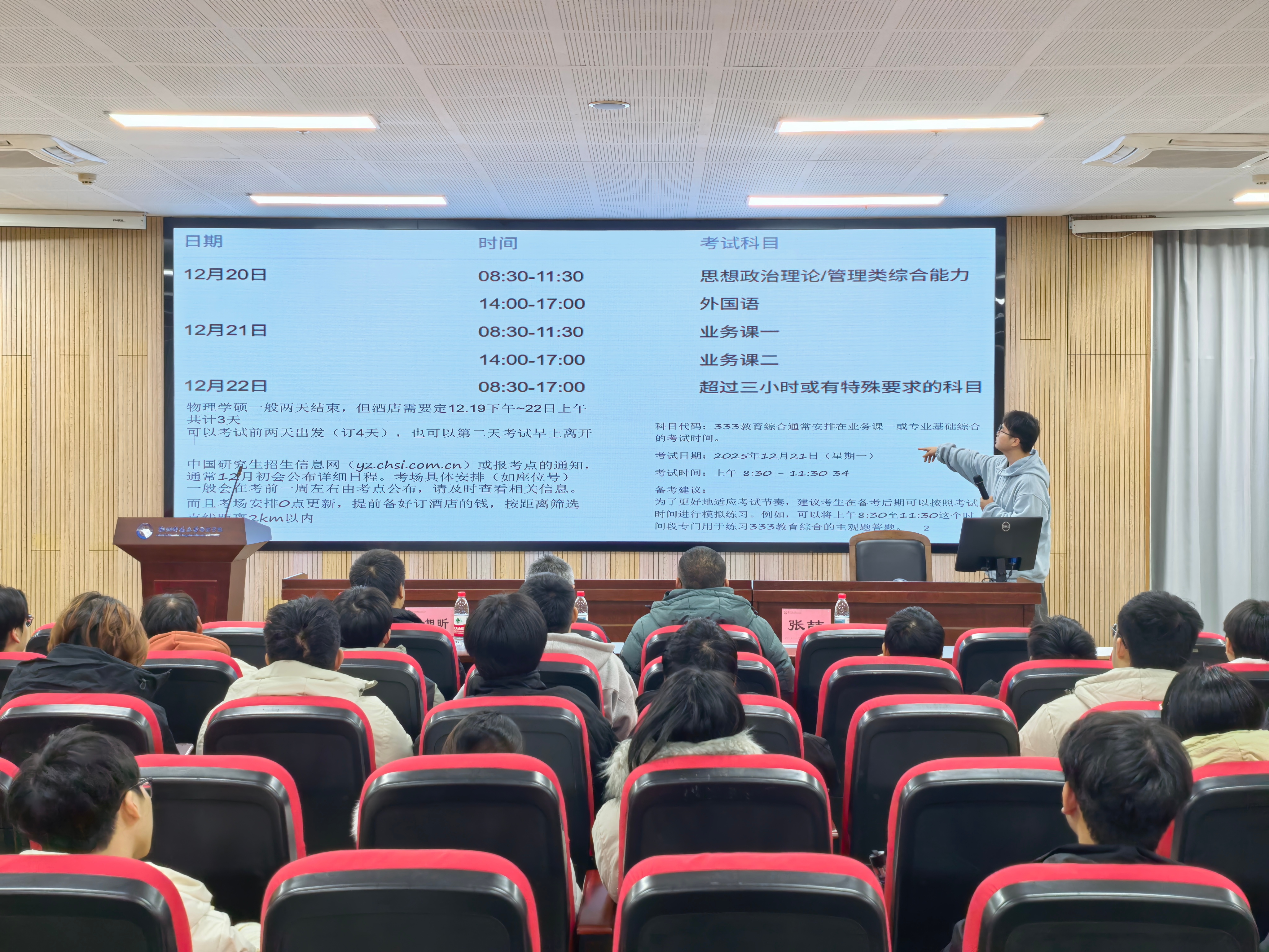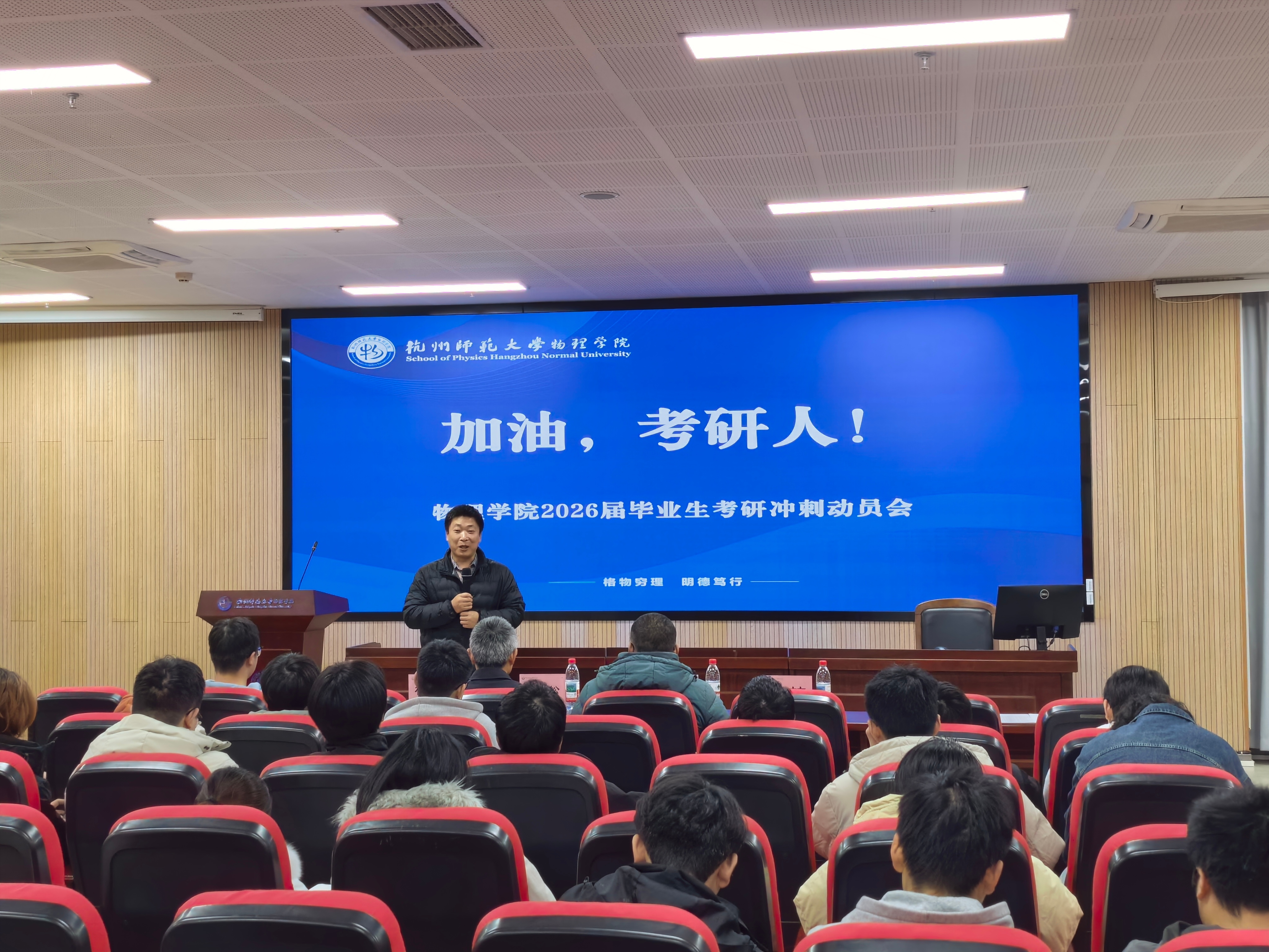 2026考研即将到来,为给考研学子加油、鼓劲,在考研冲刺阶段提升物理学子的备战信心,色花堂 于12月5日下午在勤19-120举办2026届毕业生考研冲刺动员大会。