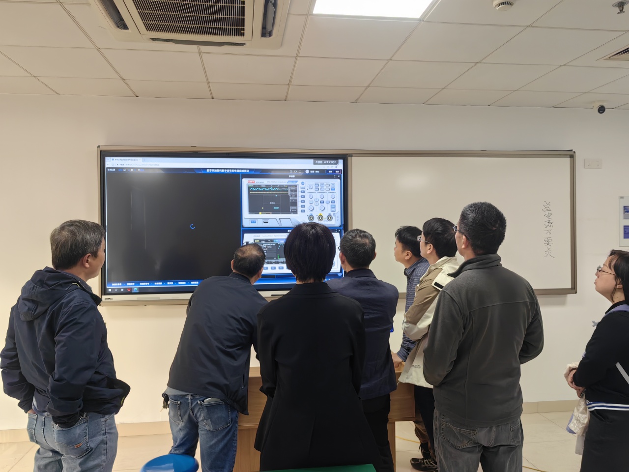 4月8日下午,色花堂 组织13名教师前往浙江工业大学物理国家级实验教学示范中心考察交流。浙工大实验中心主任刘凡新教授、陈钢教授热情接待了学院教师一行,并陪同参观了基础物理实验室和AI实验室。