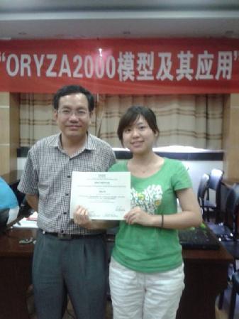 此次培训会由国际水稻研究所主持ORYZA2000模型科研,并担任全球水稻模型协作网的负责人Tao Li博士主讲,旨在推进我国信息农业与数字农业的快速发展。培训期间,Tao Li博士对ORYZA2000模型应用原理、意义以及相关操作方法进行了详细的讲解。马谊同学在认真听讲并积极与Tao Li老师交流,初步掌握ORYZA2000模型的使用方法,并顺利取得了结业证书。