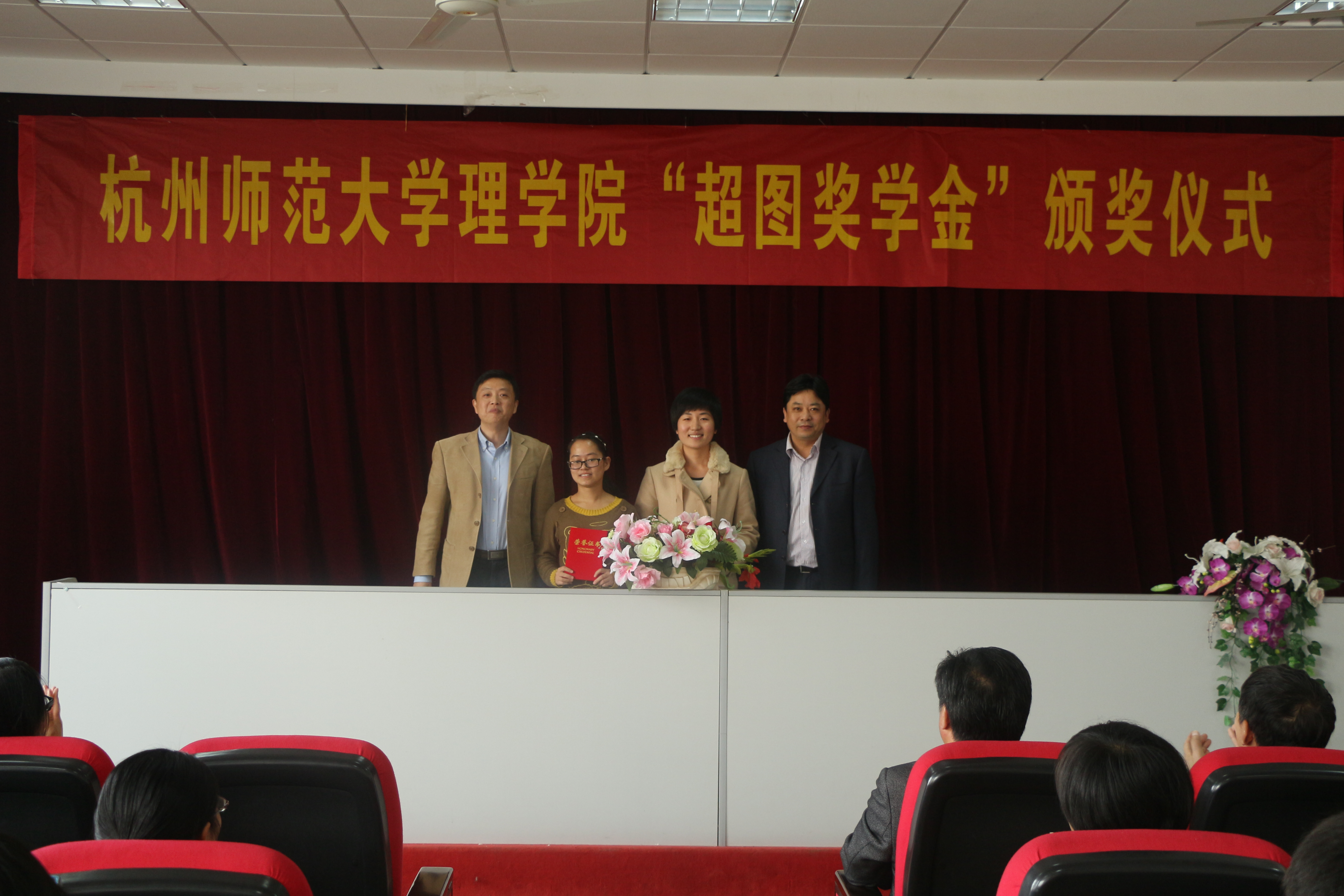 2014年11月12日下午,理学院第二届“超图奖学金”颁奖仪式在三号实验楼学术报告厅举行,问静怡、李越等12位地学系优秀学生获此奖学金并受到表彰。北京超图软件股份有限公司杭州分公司总经理戴海涛、理学院党委书记何土荣、副院长詹士昌、副书记应金飞、遥感地学系领导和教师、相关辅导员参加了本次颁奖仪式。颁奖仪式由学院学工办李擎主持。