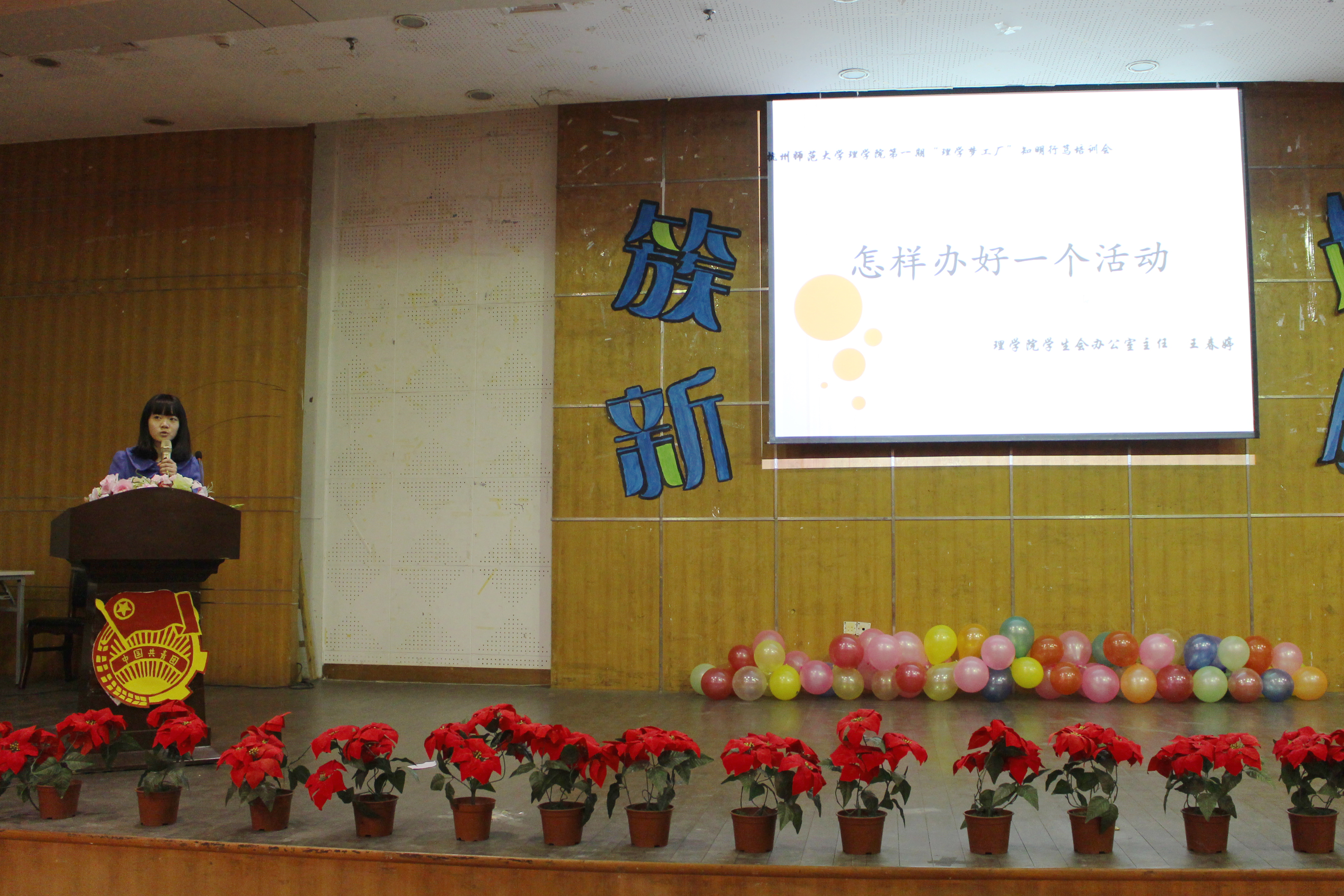 12月7日,“理学梦工厂”暨学院首期全体学生干部培训会在望道厅200座隆重举行。辅导员陈凡峰老师、柯珂老师、学院团委、学生会、社联、勤工中心及各社团的干部干事参加了本次活动。活动由院团委组织部长潘鑫源主持。