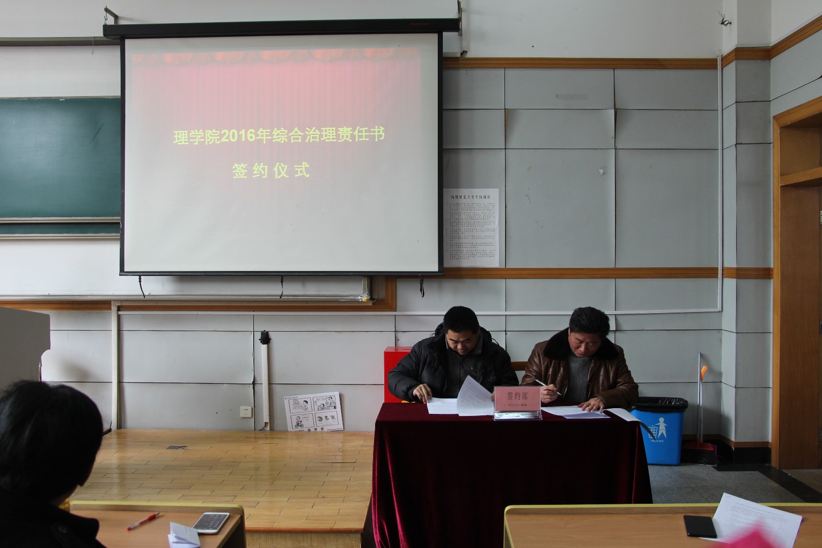 此外,会上,学院党政领导还分别与系党总支书记、系主任代表签订了学院2016党风廉政建设责任书和校园治安综合治理及创建“平安校园”目标管理考核责任书。