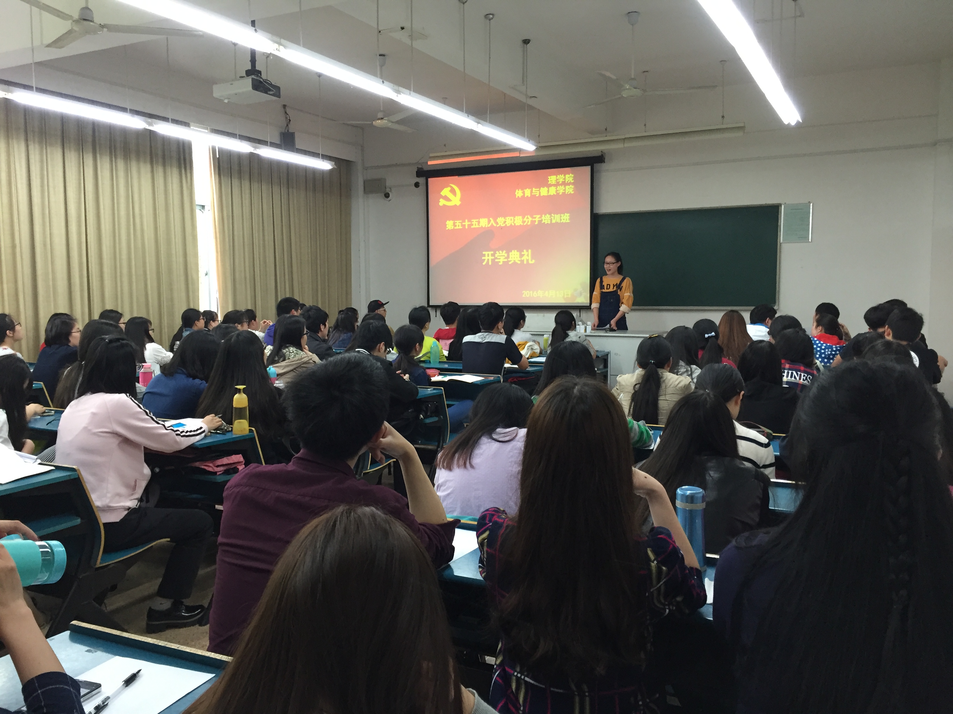4月13日下午,由理学院与体育与健康学院共同举办的第五十五期入党积极分子培训班于A楼211举办开班典礼。理学院党委副书记应金飞、体育与健康学院党委副书记方莉出席了开班典礼,理学院辅导员龙芳主持开班典礼。