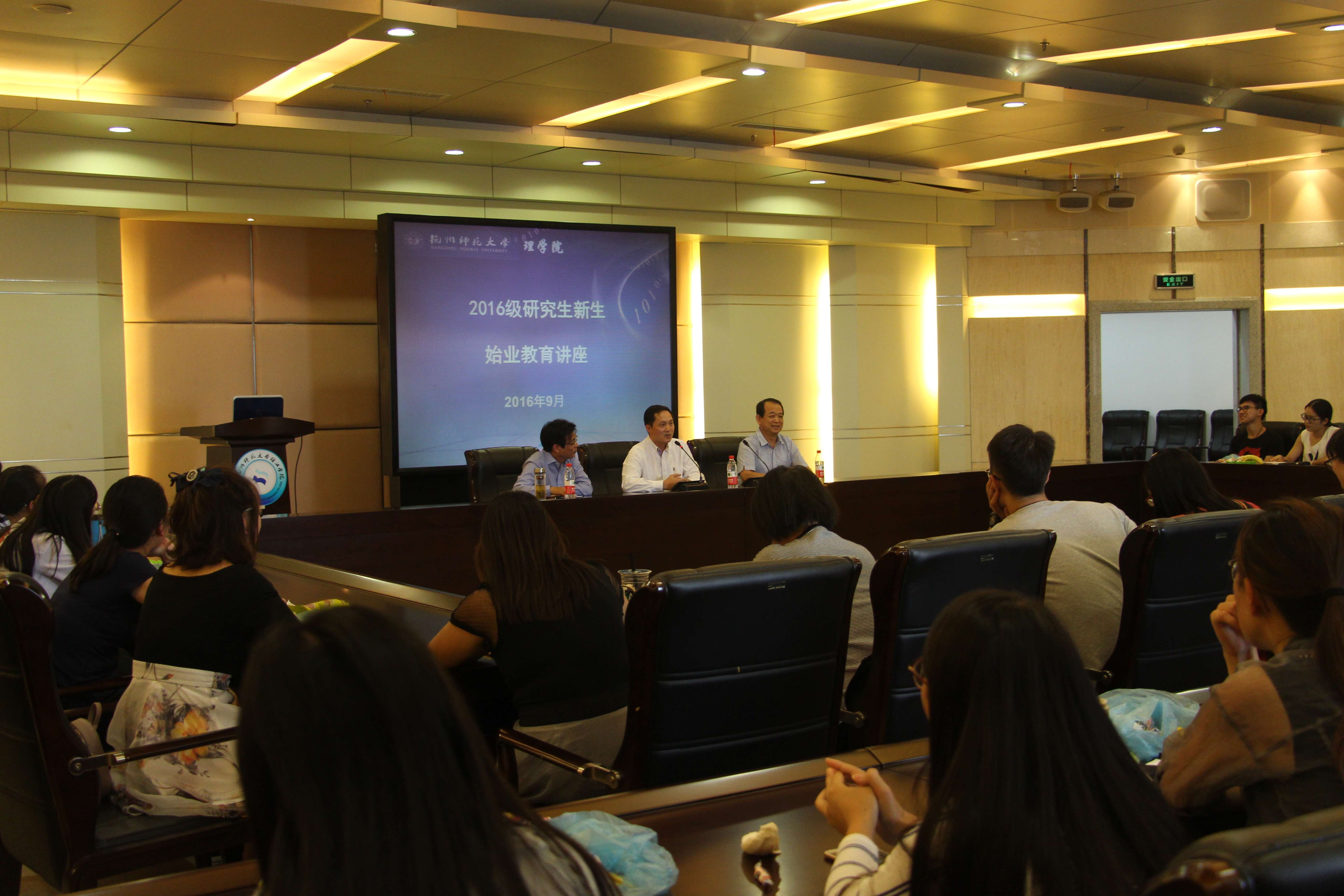 9月21日,学院在图书馆十楼报告厅举行了2016级研究生新生始业教育讲座,主题为学术道德规范和如何做一名好老师。讲座邀请到理学院副院长韩丹夫老师、杭师大附属中学校长蔡小雄老师、杭师大东城实验学校校长张立栋老师作为主讲嘉宾。