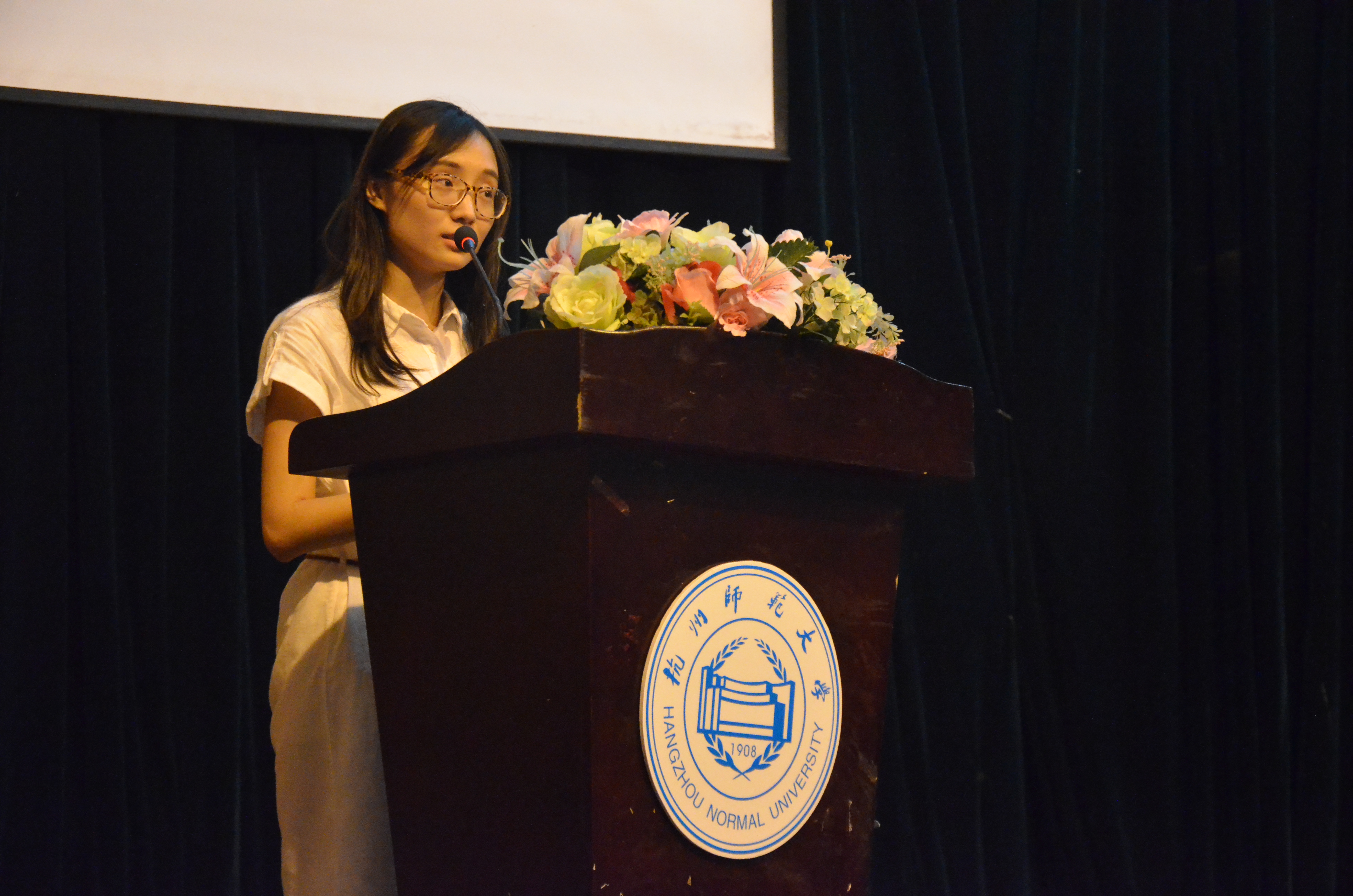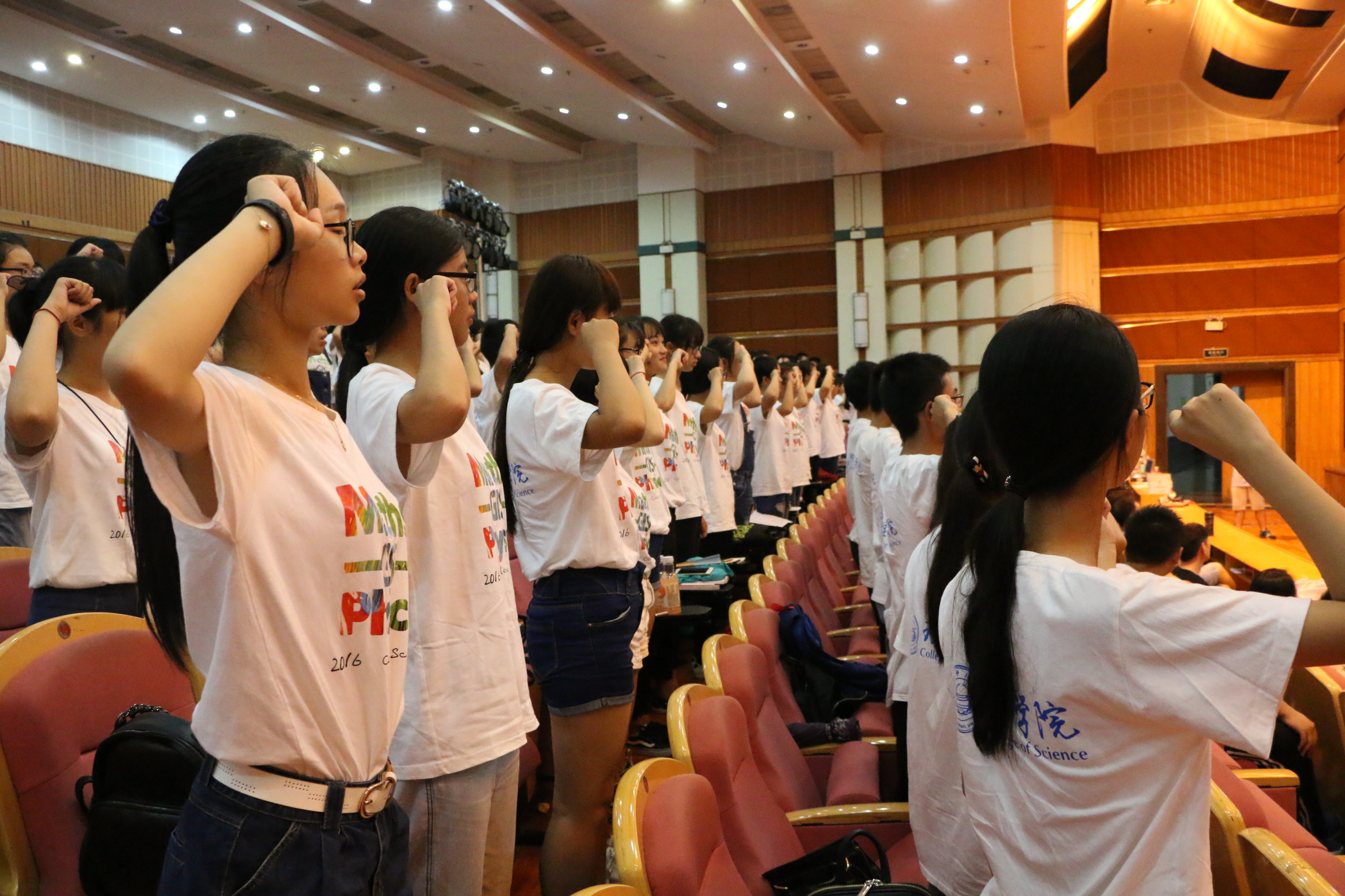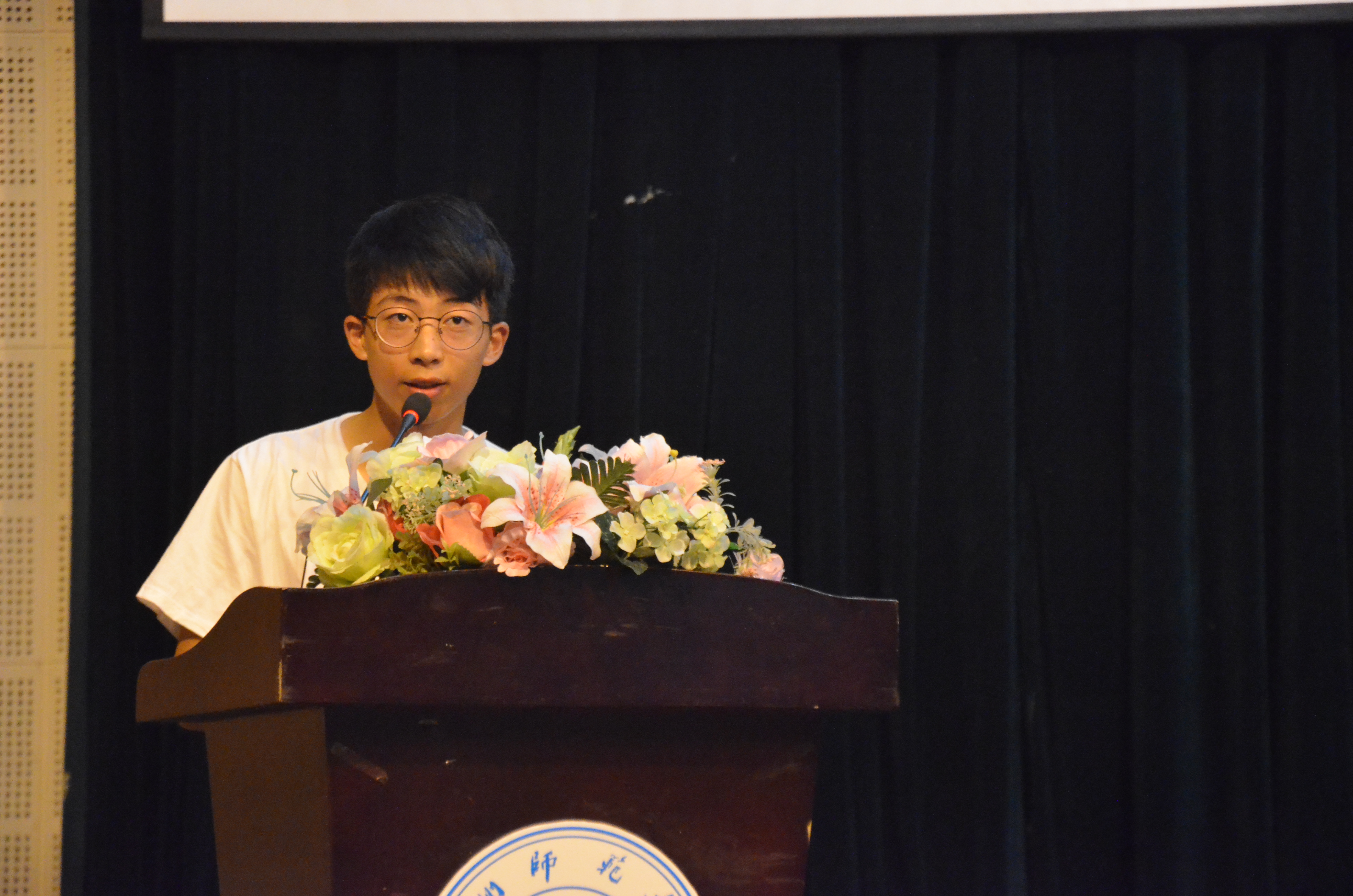 典礼开始后,精心准备的视频,承载着学长们的期望,为新生们送来祝福。执行院长詹士昌老师为新生致辞。他通过几例真实事例,对2016级新生提出了四点希望:刻苦学习,规划学业;和谐相处,学会分享;尊重他人,自律自省;勇创佳绩,共创美好。随后,教师代表谷峰老师结合自己的人生经历向同学们提出了早做规划、明确目标、提高自学能力、提升自身修养的建议和期望。学长代表罗斯琦同学发表了“一颗初心,两份感恩,三个目标”的主题发言。新生代表黄传杰同学的发言,则表达了他对未来大学生活的向往,发言结束后他带领新生进行了庄重的宣誓。最后,理学院党委书记何土荣老师通过几则故事向同学们传达了勤于阅读、学会尊重、真诚无价、关注细节的希望和期待。