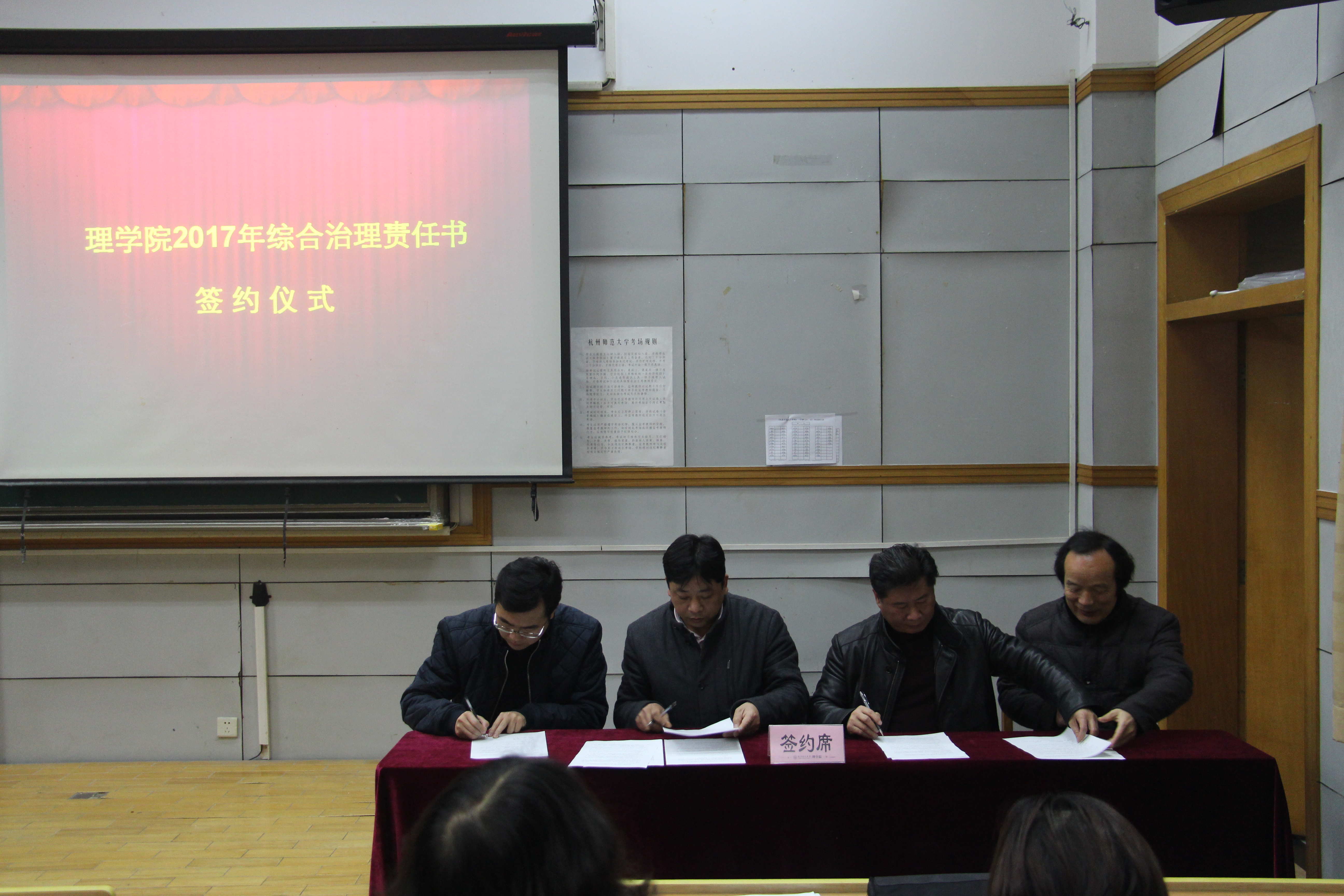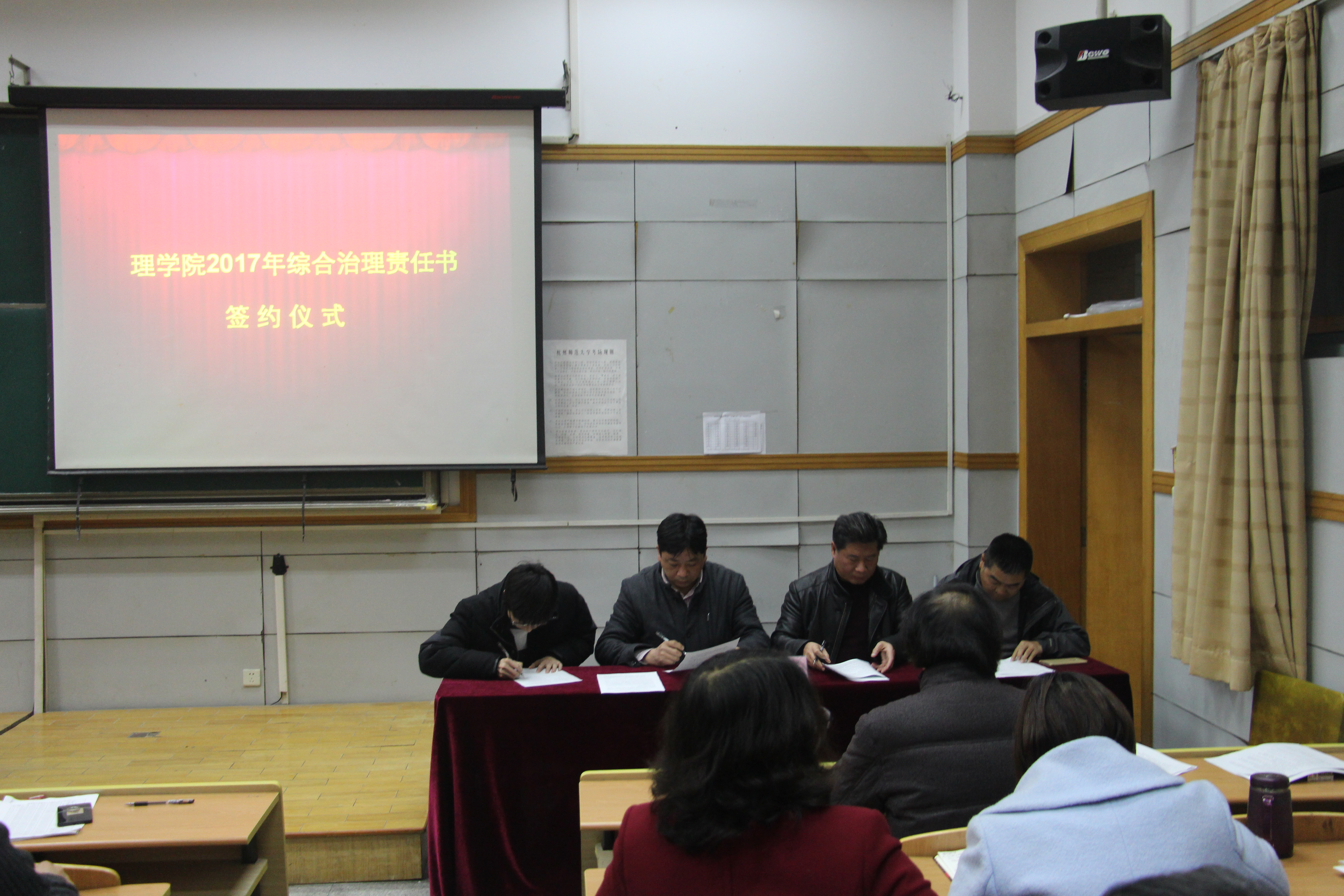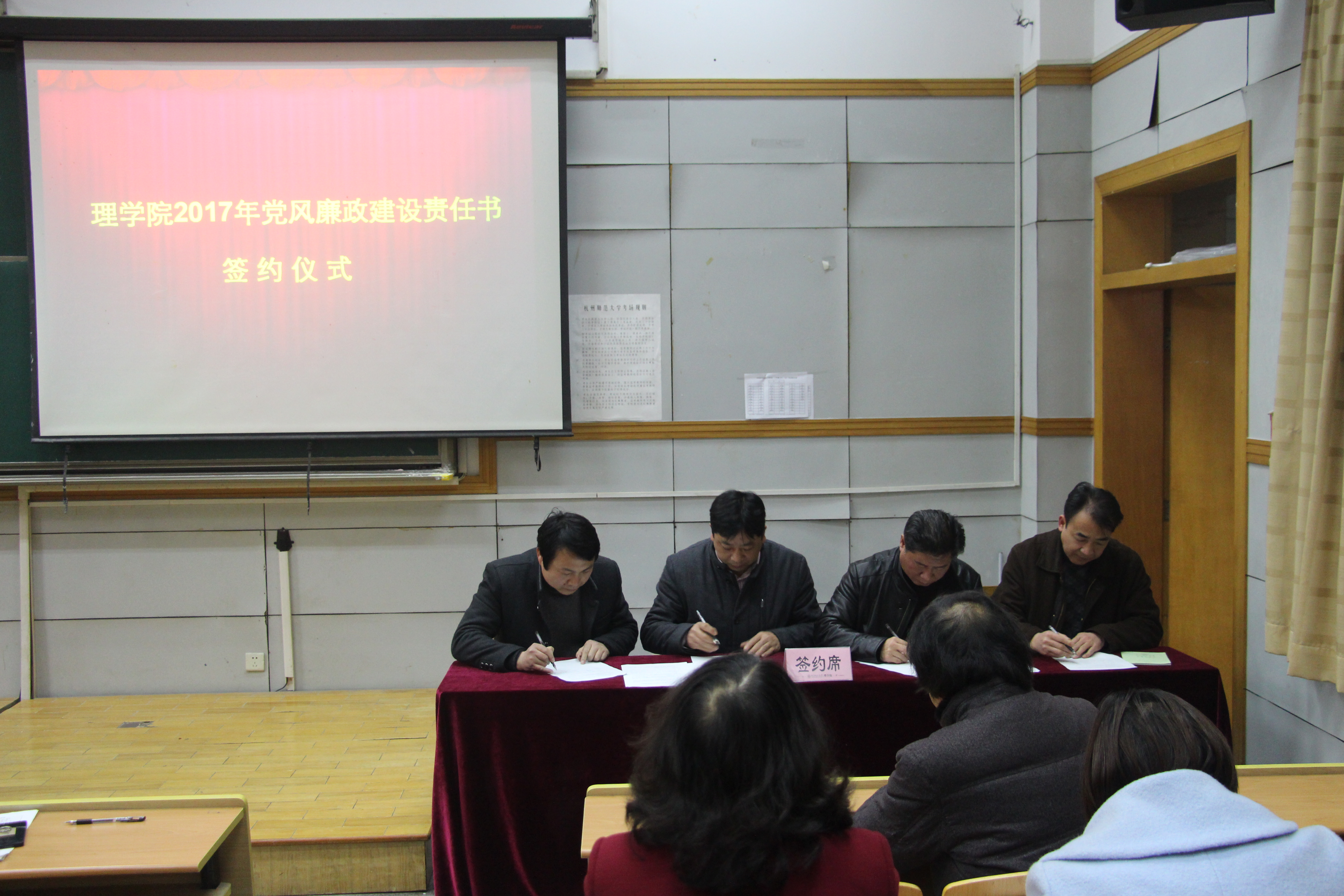 此外,学院党政领导还与各系主任、系党总支书记签订了《理学院2017年党风廉政建设责任书》《理学院2017年度校园治安综合治理及创建“平安校园”目标管理考核责任书》和《理学院2017年消防安全目标管理责任书》,学院其他领导也就分管工作与参会教职工做了交流和通报。