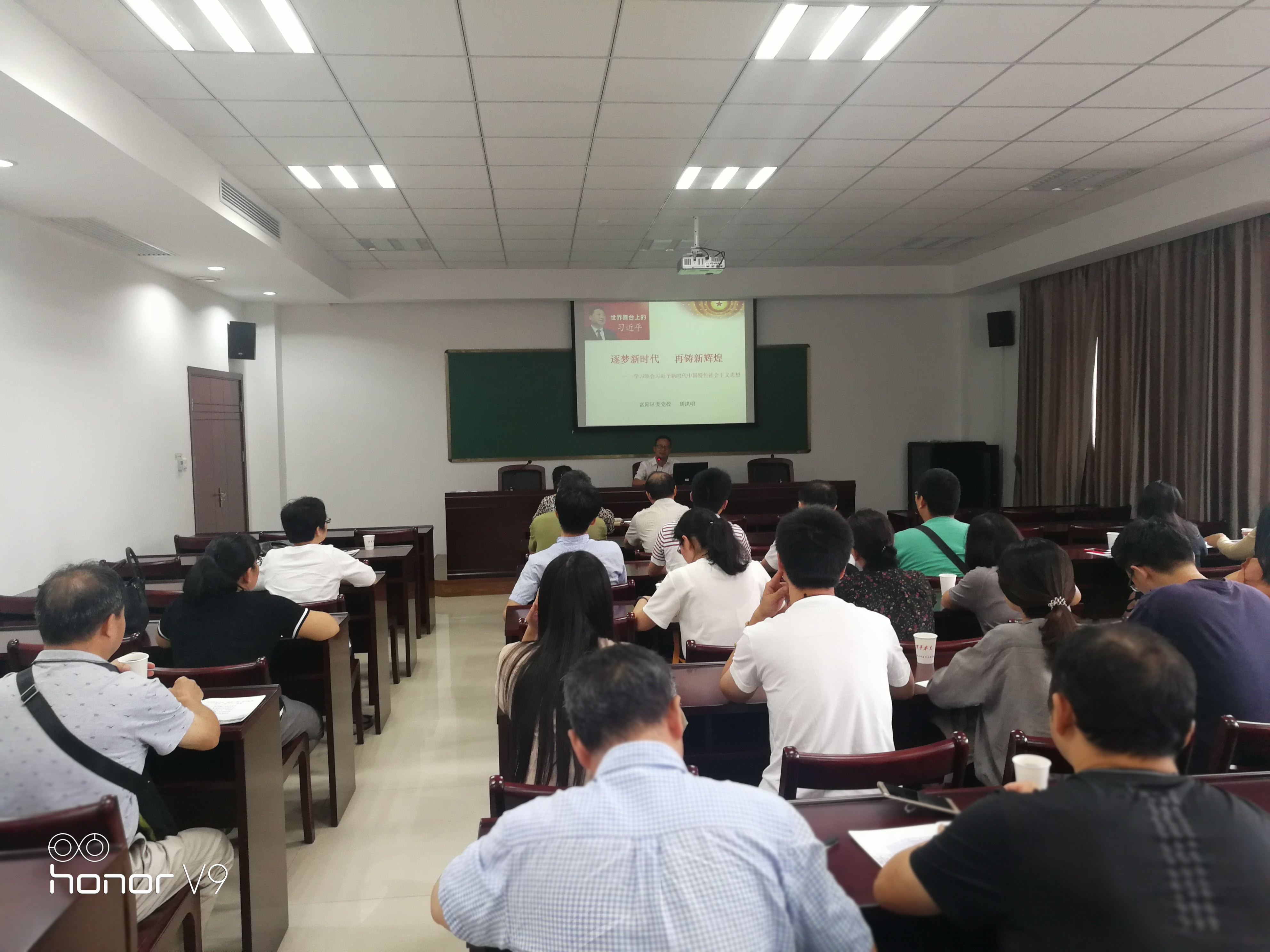 参观活动后,学院党委还邀请了富阳区委党校胡洪明老师给党员们做了一场关于《逐梦新时代、再铸新辉煌——学习领会习近平新时代中国特色社会主义思想》的现场专题讲座。