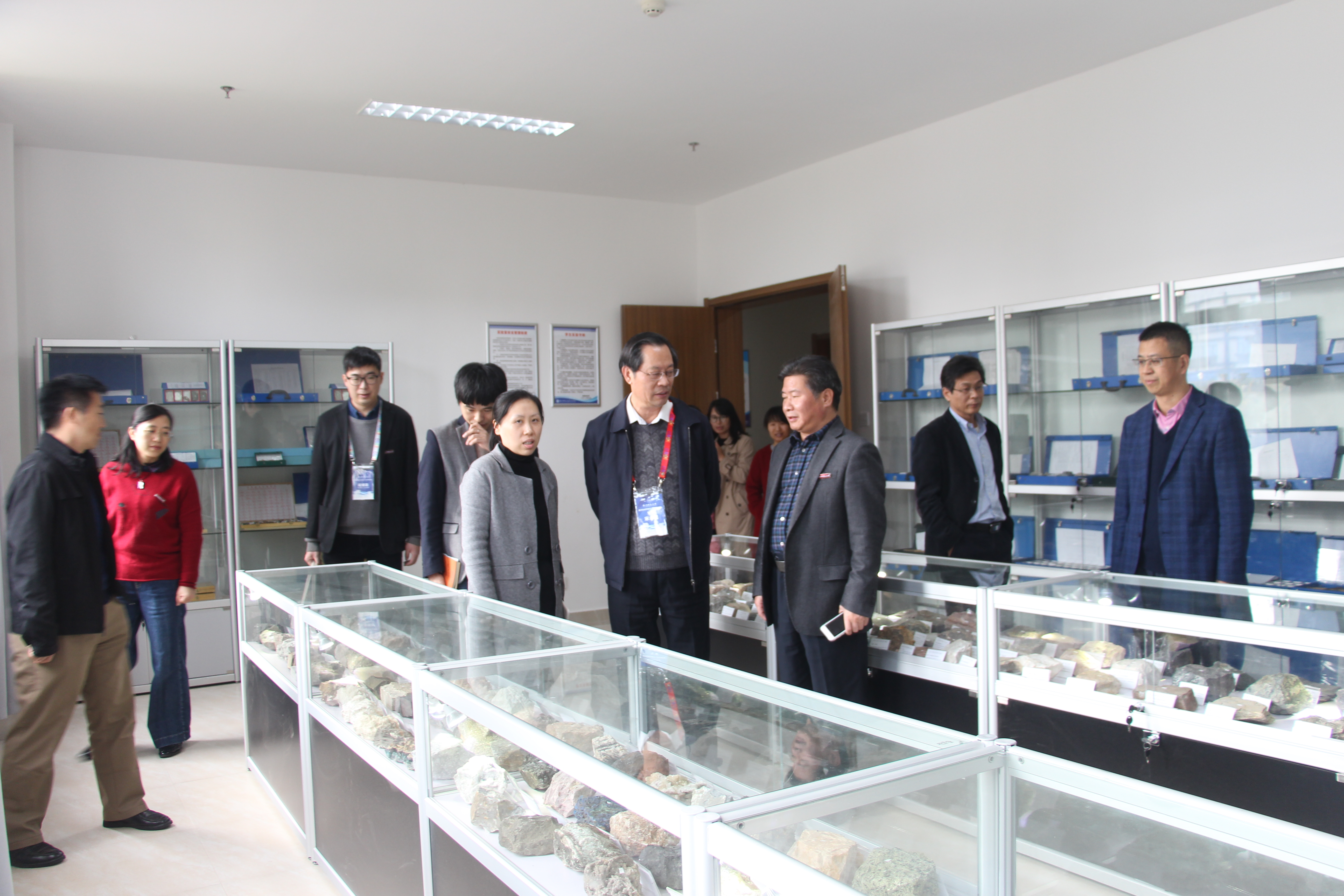 专家考察地质标本展示室