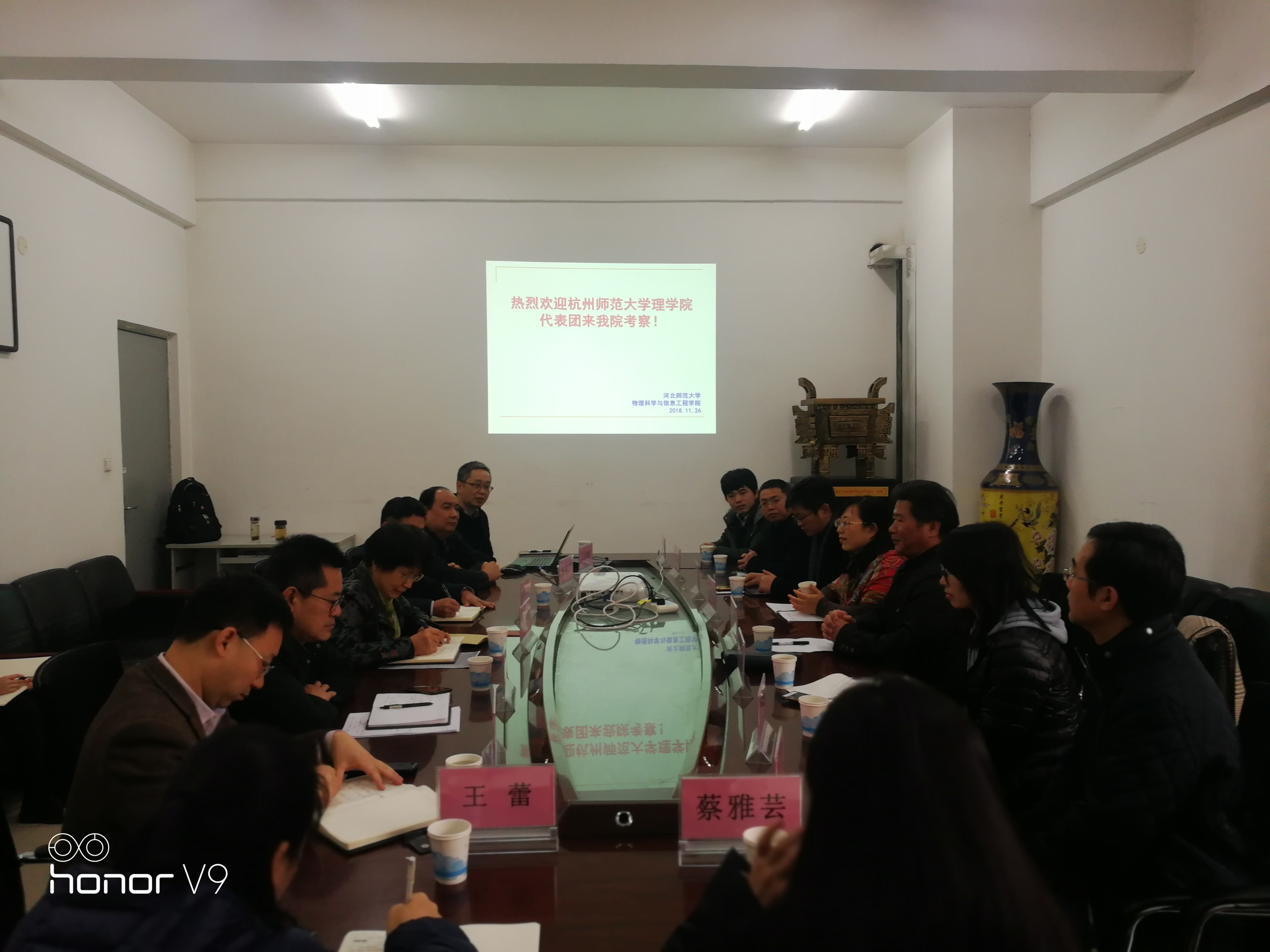 为了更好地促进学院发展,了解兄弟院校在人才培养和实验室建设等方面的举措,11月26日,学院由院长、书记带队,组织了系主任等各系及行政中层前往河北师范大学物理科学与信息工程学院调研学习。