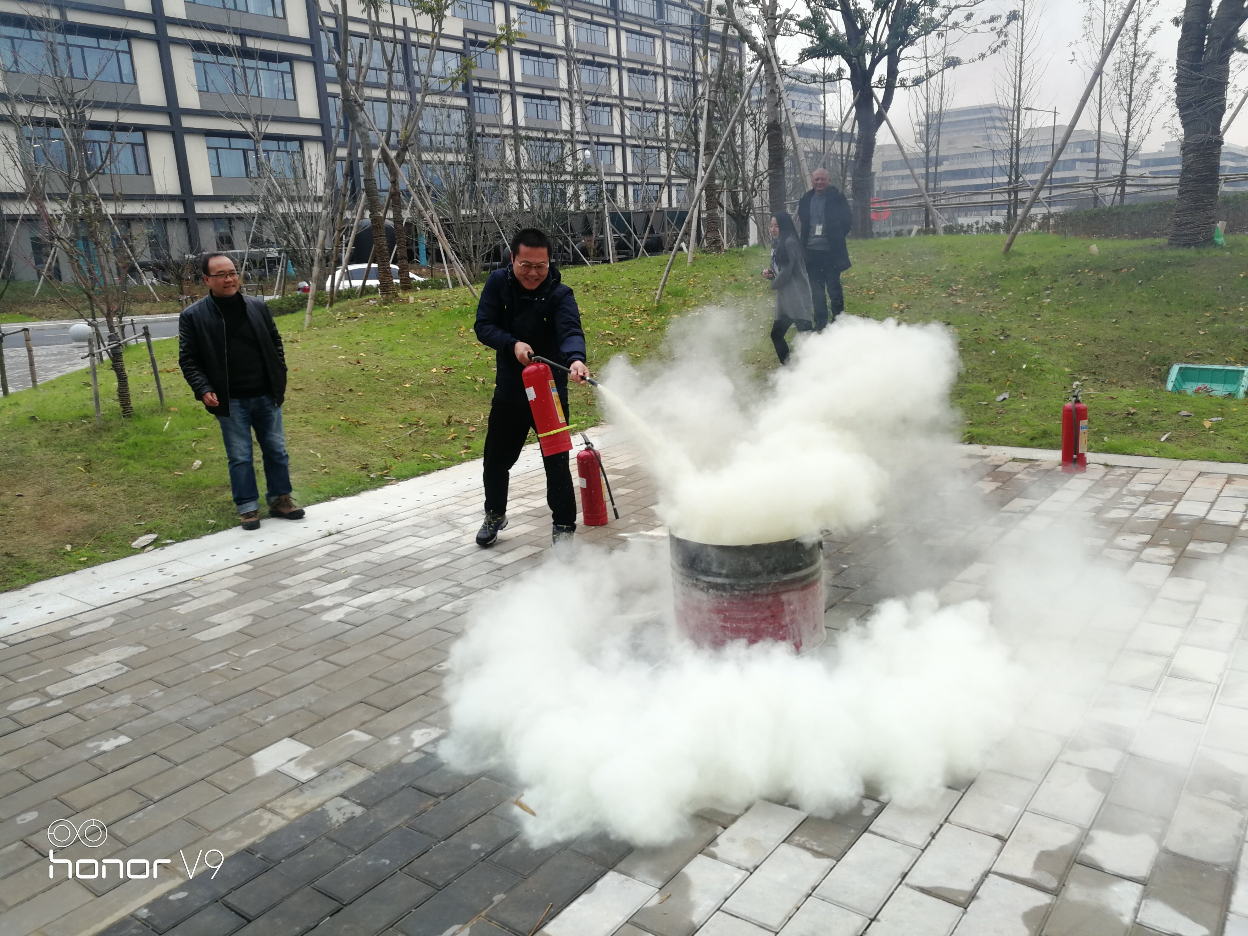 会后,学院教工还现场演练了消防器材干粉式灭火器的使用方法。