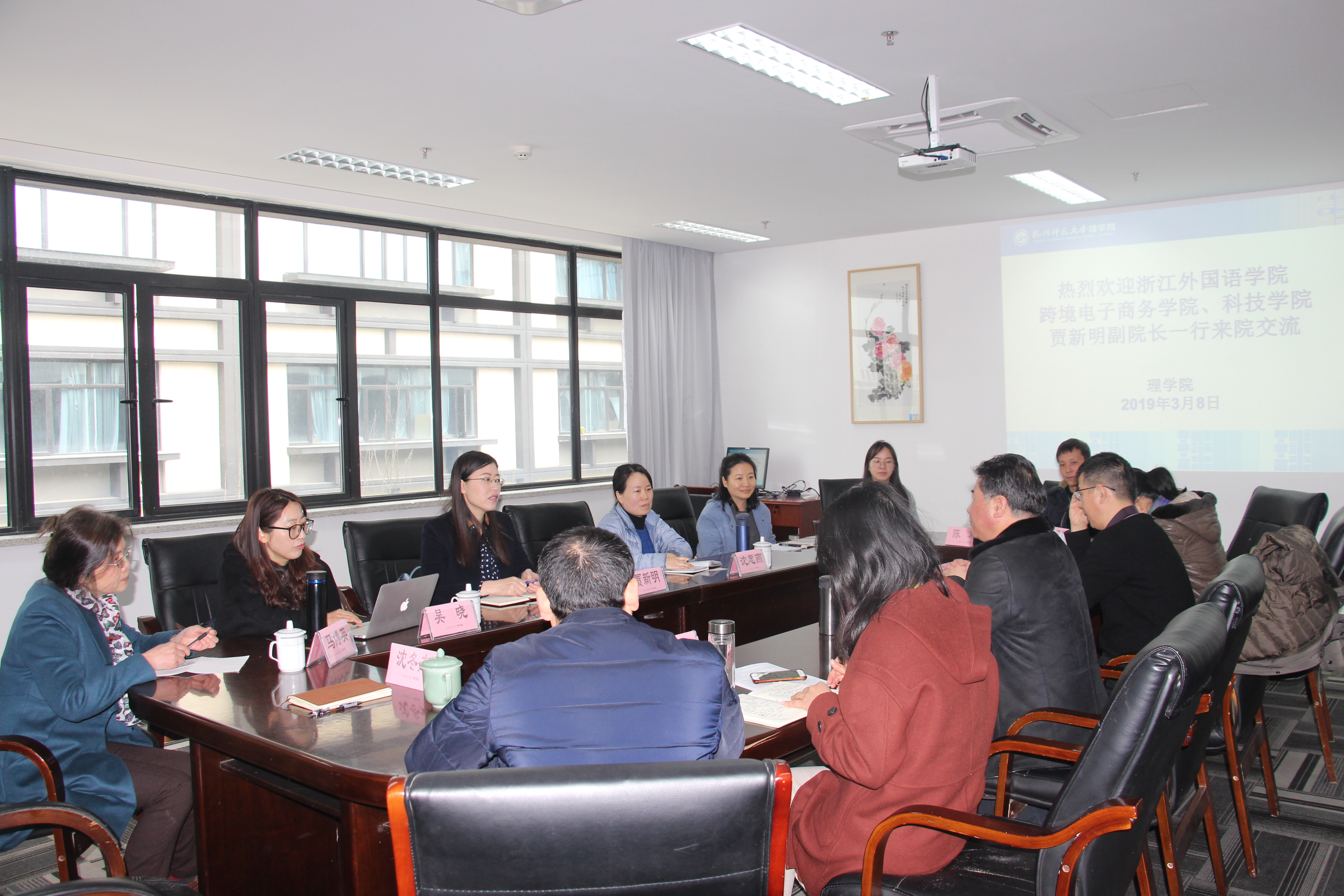 3月8日,浙江外国语学院跨境电子商务学院、科学技术学院副院长贾新明一行6人来色花堂 调研交流,色花堂 院长詹士昌、副院长叶立军、副书记应金飞等领导参加座谈会。