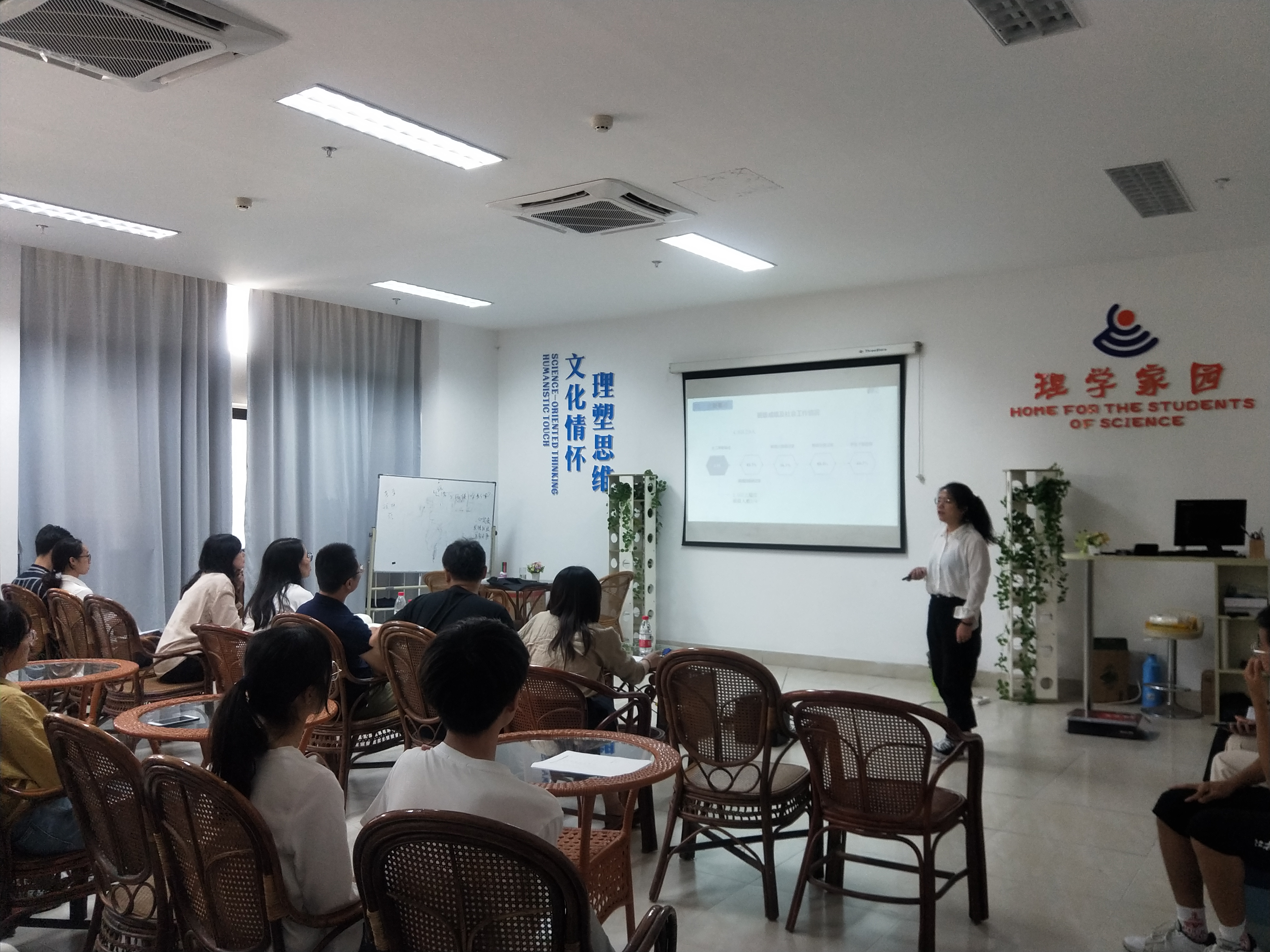 近日,理学院2018-2019学年校文明班级、优良学风班级答辩会在勤园19-114理学家园举行。理学院党委副书记应金飞、理学院学工办丁伟、陈凡峰、柯珂、蔡雅芸,学院主要学生干部代表担任了本次答辩会的评委。