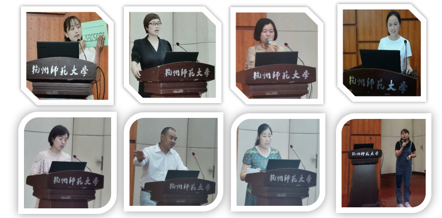 今天上午上场进行教学展示的分别是孙查仙、王艳、吴丽、左银龙、刘庆慧、周孝莲、张云丽、高爱社,他们的课各具特色,教学手段多样,教学方法灵活,充分章显出老师们的知识之渊博,教学功底深厚。把学生难以掌握的知识化难为易,把它们编成了顺口溜、儿歌等,授之以鱼不如授之以渔,注重培养学生的能力和知识的迁移。杭州师范大学外语学院副教授、英语系副主任骆琤教授对八位老师进行精准点评,教学内容贴近学生的生活实际,创设情境好,注重能力提升,问题设计具有启发性,能很好地训练学生思维。