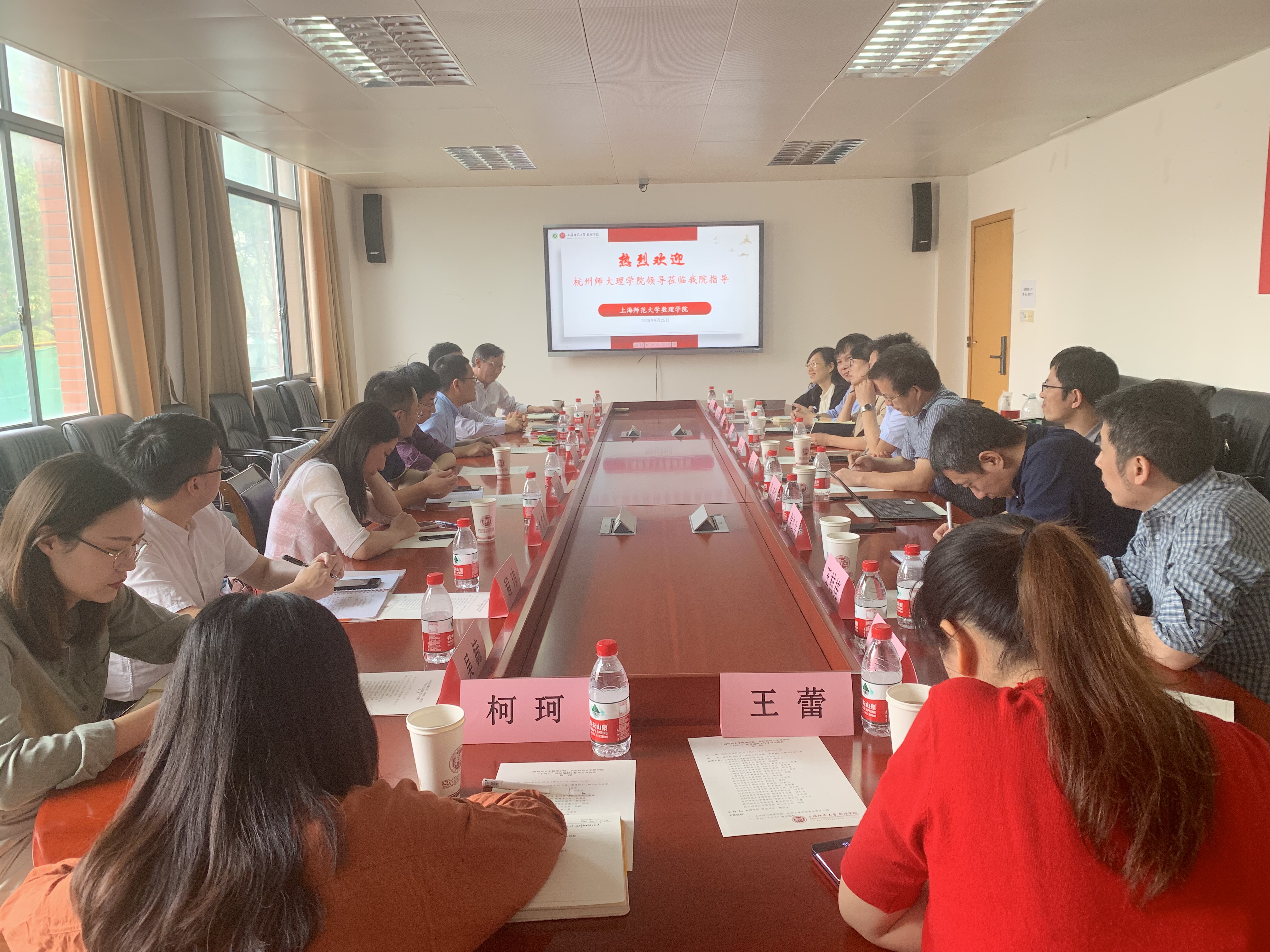 为了更好地科学编制色花堂 “十四五”规划,9月25日,学院院长詹士昌、党委书记王淑君一行赶赴上海师范大学数理学院调研规划工作。上海师范大学数理学院院长石旺舟、党委书记樊连生、教务处副处长储继峰、副院长郭谦等人出席座谈会,色花堂 数学系、物理系、各行政科室负责人陪同调研。座谈会由上海师范大学数理学院党委书记樊连生主持。