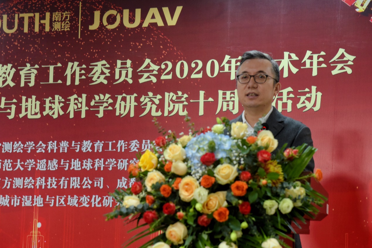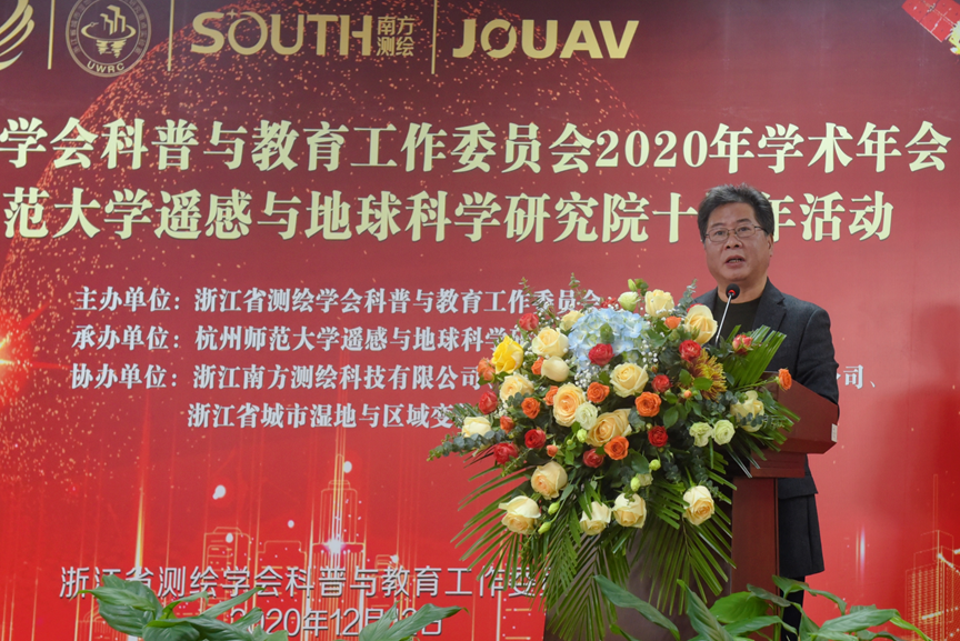 李柏副理事长代表浙江省测绘学会致辞,对杭州师范大学遥感与地球科学研究院对学会工作的支持和贡献高度肯定,对遥感与地球科学研究院十年耕耘取得的显著成绩表示了高度赞扬,对遥感与地球科学研究院的发展殷切期待。