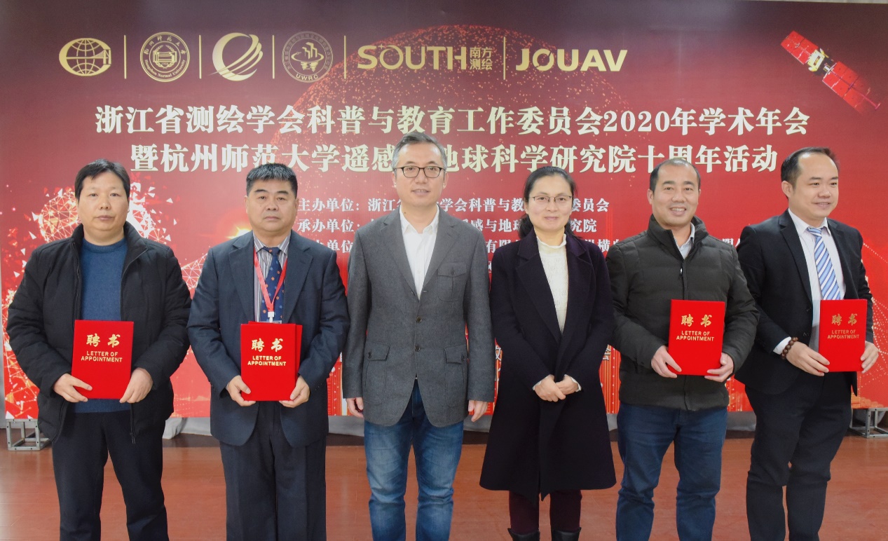 开幕式上,省测绘学会李柏副理事长和省测绘学会杨文敬秘书长还代表学会向科普与教育工作委员会主任委员张登荣教授、副主任委员孔维华教授、孙伟伟教授、徐文兵教授、陈述总经理颁发了聘任证书。浙江省测绘学会科普与教育工作委员会是我省测绘事业发展的重要桥梁和纽带。2020年学会组织架构进行了调整,科普与教育工作委员会挂靠杭州师范大学。