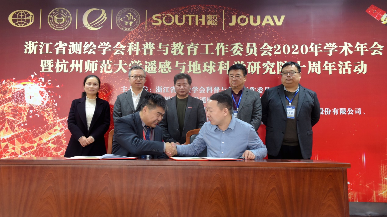 最后,成都纵横自动化技术股份有限公司出资在杭师大设立纵横奖学金,该奖学金主要用于奖励地理信息科学专业成绩优异的学子。遥感与地球科学研究院张登荣教授和纵横科技王朝明总监,分别代表学校和公司现场签约,詹士昌院长、李柏副理事长,杨文敬秘书长,汤国安教授,原波副总经理共同见证了签约仪式。纵横科技是全球领先的工业无人机服务企业。纵横奖学金的设立,对于地理信息科学专业的建设必将发挥重要的作用!