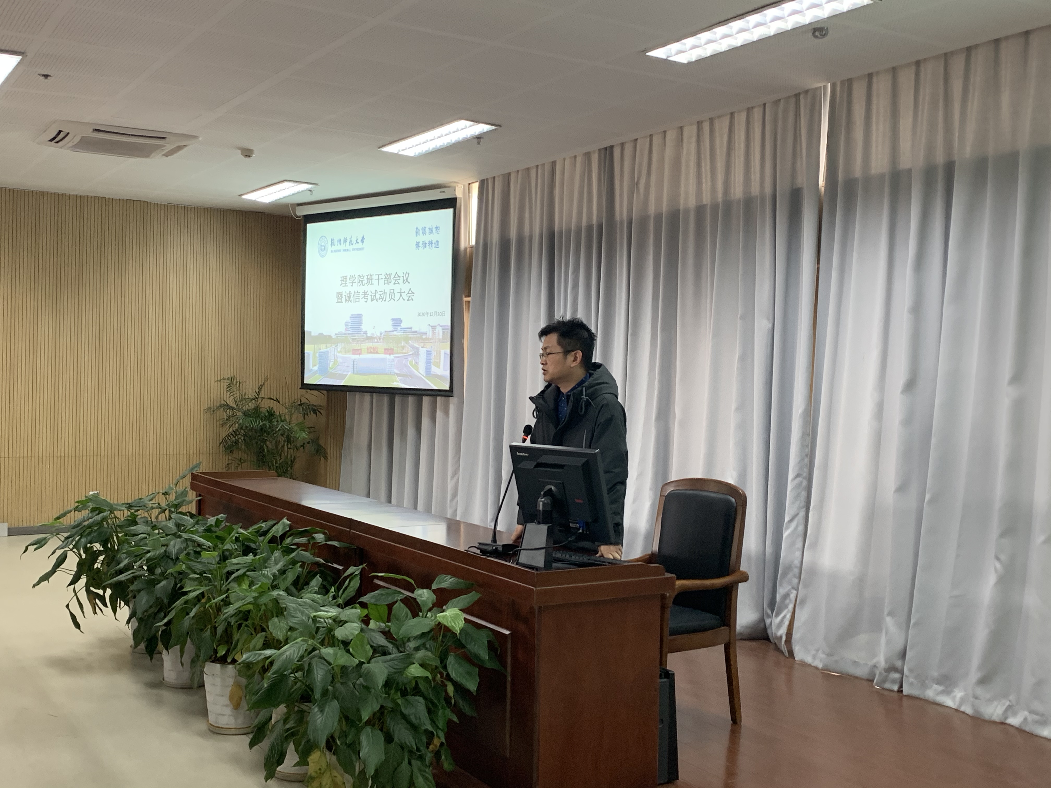 为增强同学们诚信考试意识,严肃考风考纪,营造自立自律、刻苦学习的期末备考氛围,12月30日,理学院召开全体班干部会议暨诚信考试动员大会,学院党委副书记应金飞、院长助理马国春、教务科科长王蕾、各年级辅导员以及各班级主要学生干部参加了此次大会。