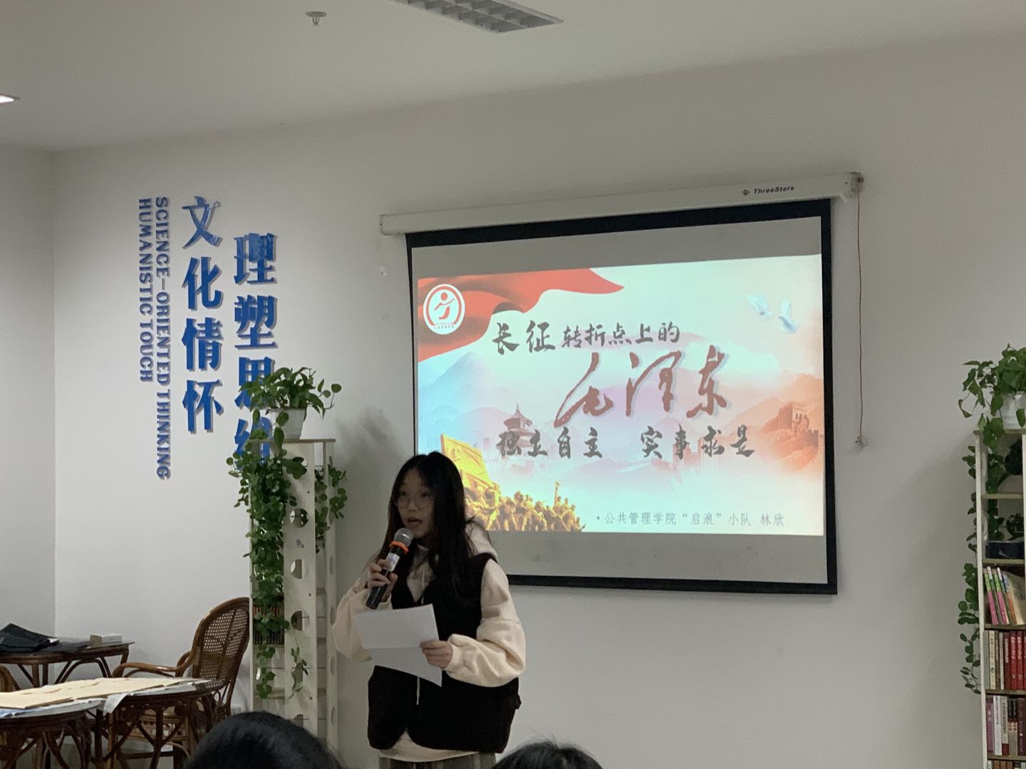 会上,科教181班邀请了公共管理学院的林欣同学讲述党史。作为公管学院“丹史青传”项目宣讲成员的她,从南湖红船上中共一大的顺利召开讲到井冈山革命根据地的创建,从跋山涉水的红军长征讲到具有历史转折意义的遵义会议,重温党史经典,让在场的同学将“独立自主、实事求是”的精神镌刻于心。“一切历史都是当代史。“我们必须以史为鉴,才能继续勇毅前行。为了加深同学们对党史的认识与理解,班会继而开展了有奖知识竞答,以抢答的方式回答有关党史的问题。同学们踊跃参与,现场气氛十分轻松活跃。