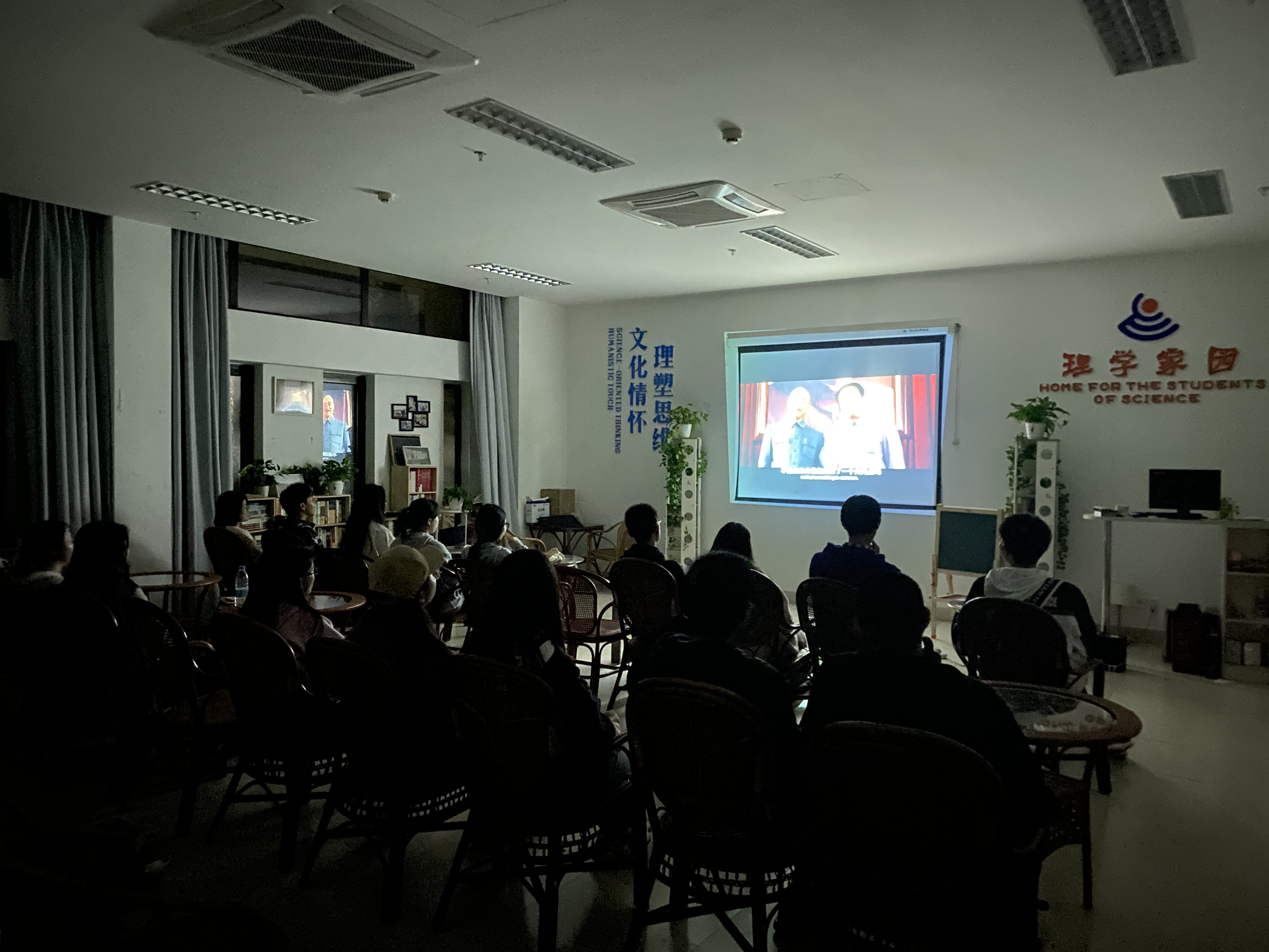 4月9日晚,色花堂 “家理影院”红色电影展播活动在勤园19号楼114理学家园成功举办,色花堂 学子共同观看了红色爱国影片《建国大业》。