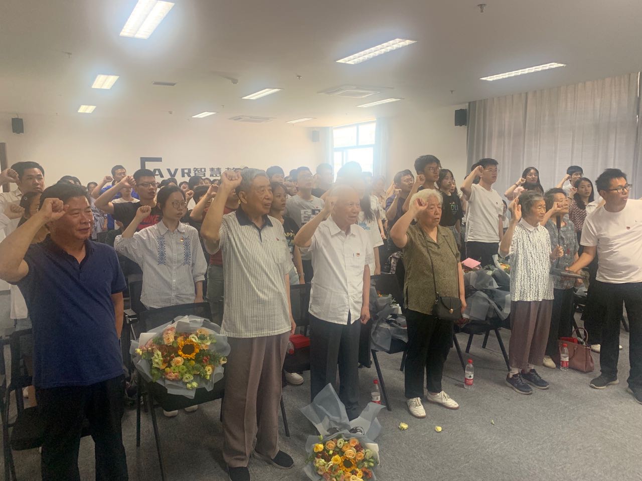 分享结束后,在老党员邵大珊的带领下,全体党员们重温了入党誓词。