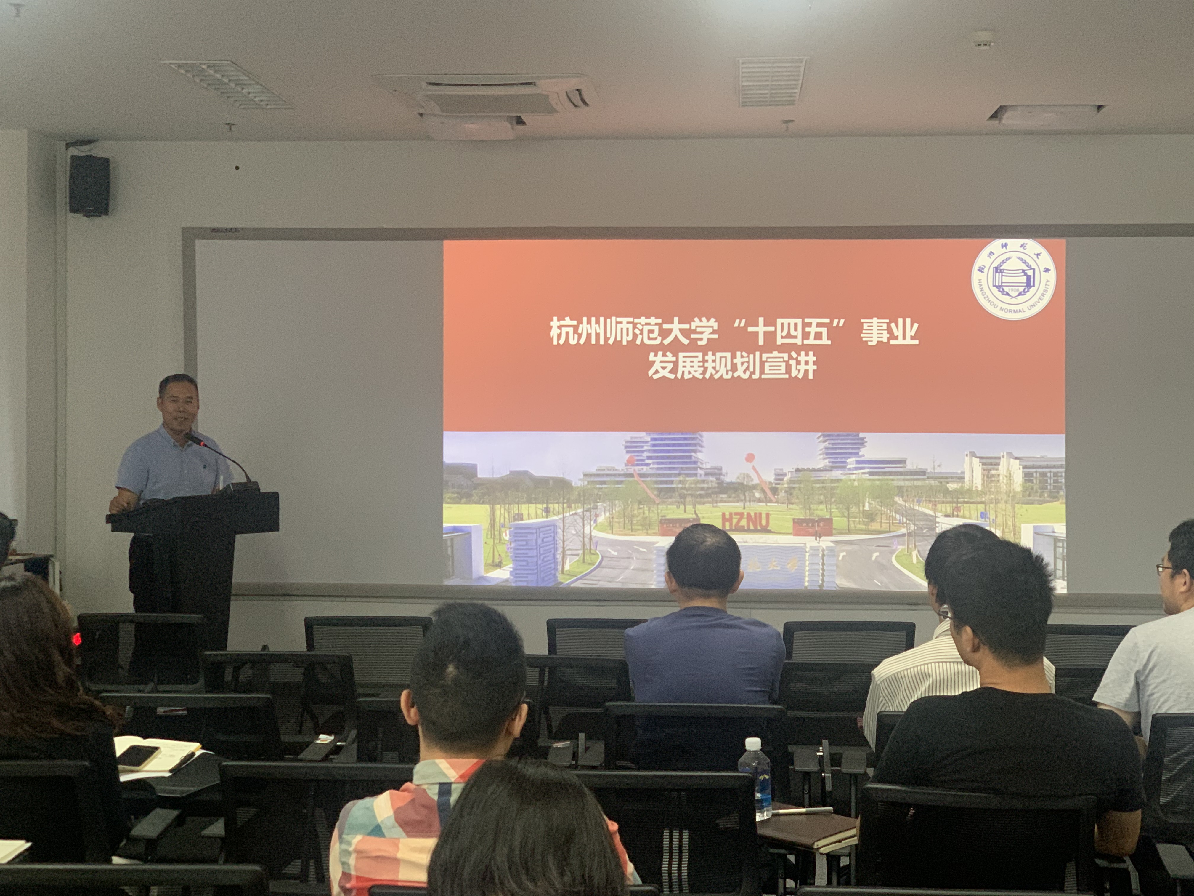 校发展与改革处副处长孙德芳作关于解读学校“十四五”规划和教育评价改革的专题报告,他主要围绕杭州师范大学“十四五”规划背景、面临挑战、发展目标、规划结构、任务举措等内容展开。