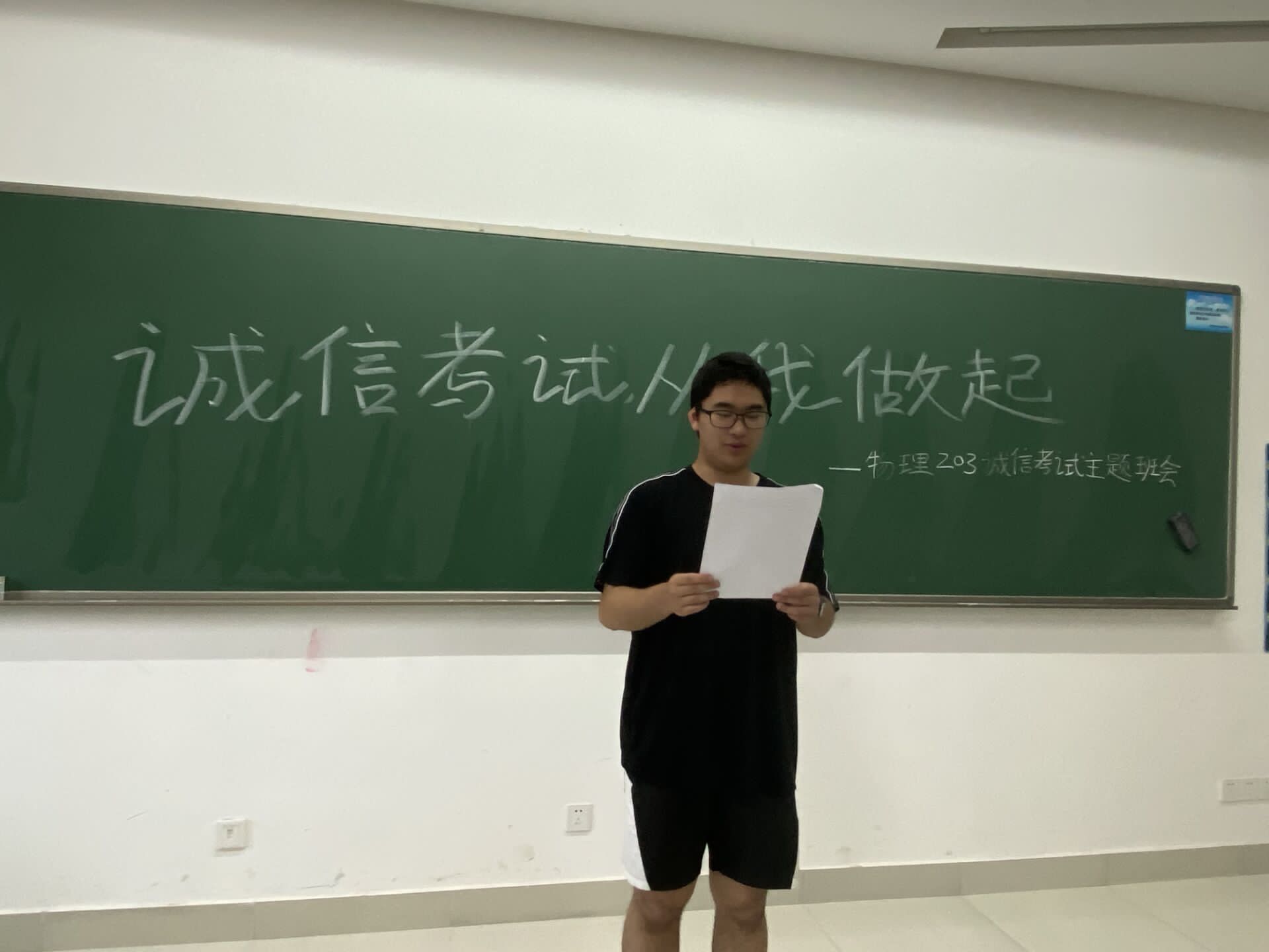 为增强同学们诚信考试意识,严肃考风考纪,营造自立自律、刻苦学习的期末备考氛围,自6月18日起,理学院组织各年级、各班级召开诚信考试主题班会。