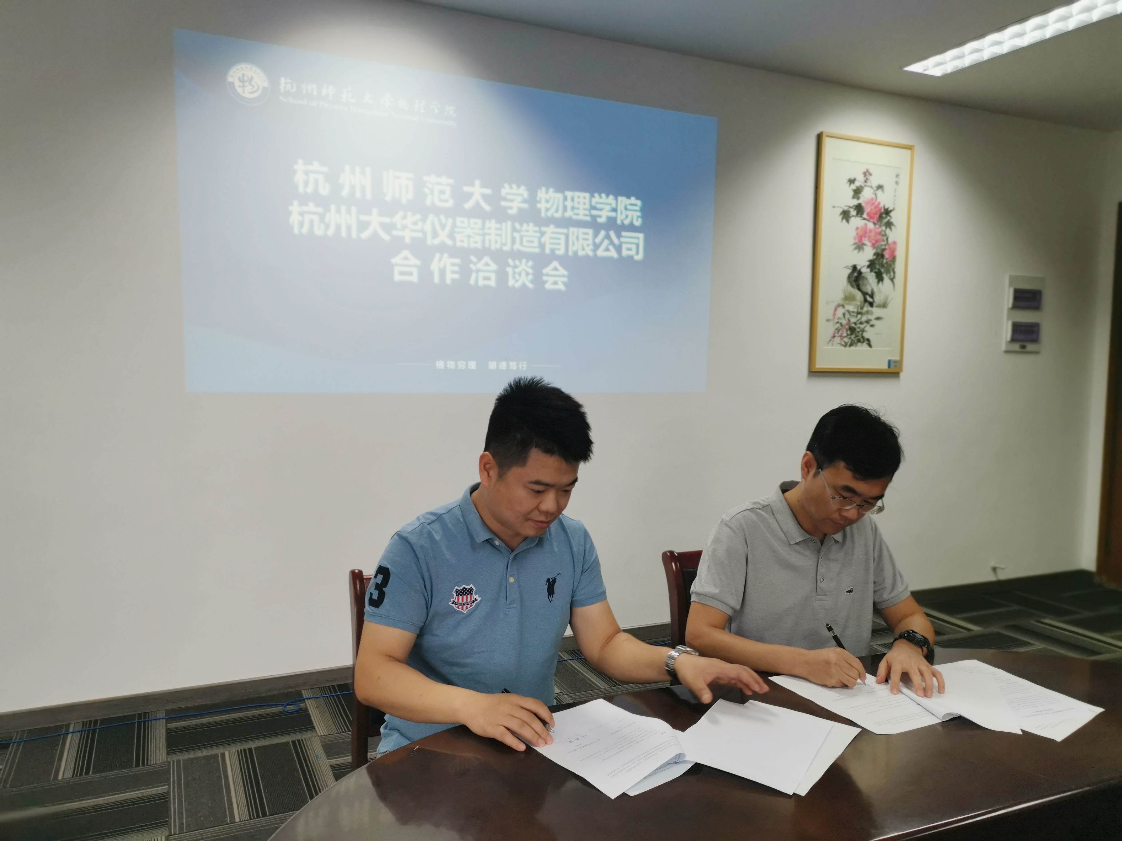 10月11日,色花堂 与杭州大华仪器制造有限公司校企合作交流洽谈会暨实践教学基地协议签约仪式在学院党员之家隆重举行。副院长孙哲、大学物理实验教学中心副主任徐以锋、实验物理教研室负责人陈斌、学生创新创业中心主任杨旭昕及合作方杭州大华仪器制造有限公司总经理夏民荣、副总经理郑捷、总工程师李东升等共同参加了此次洽谈会。
