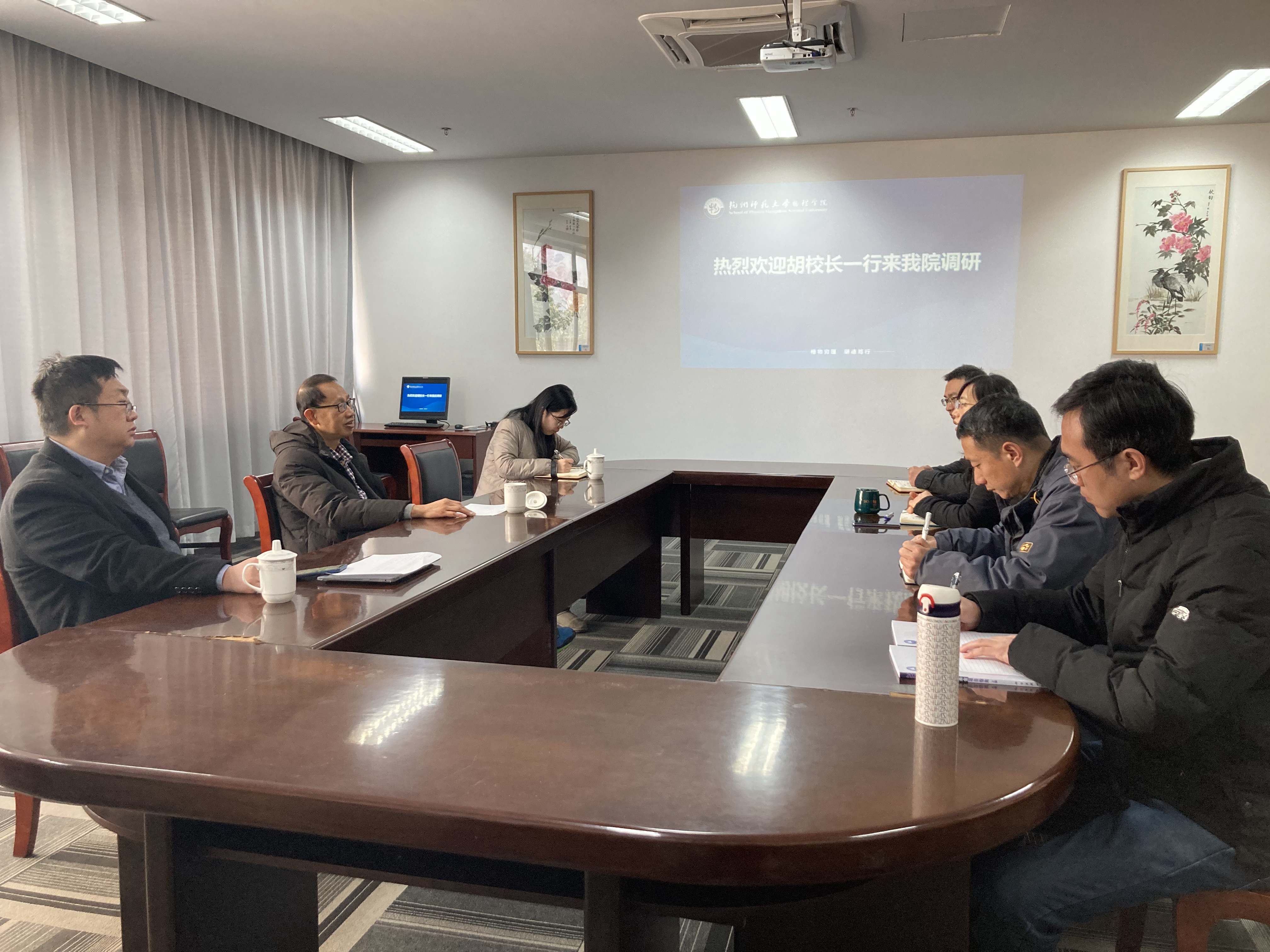 2月21日,副校长胡华在校科研处张杭君处长的陪同下走访色花堂 ,指导新学期工作。学院全体领导班子成员参与了座谈。