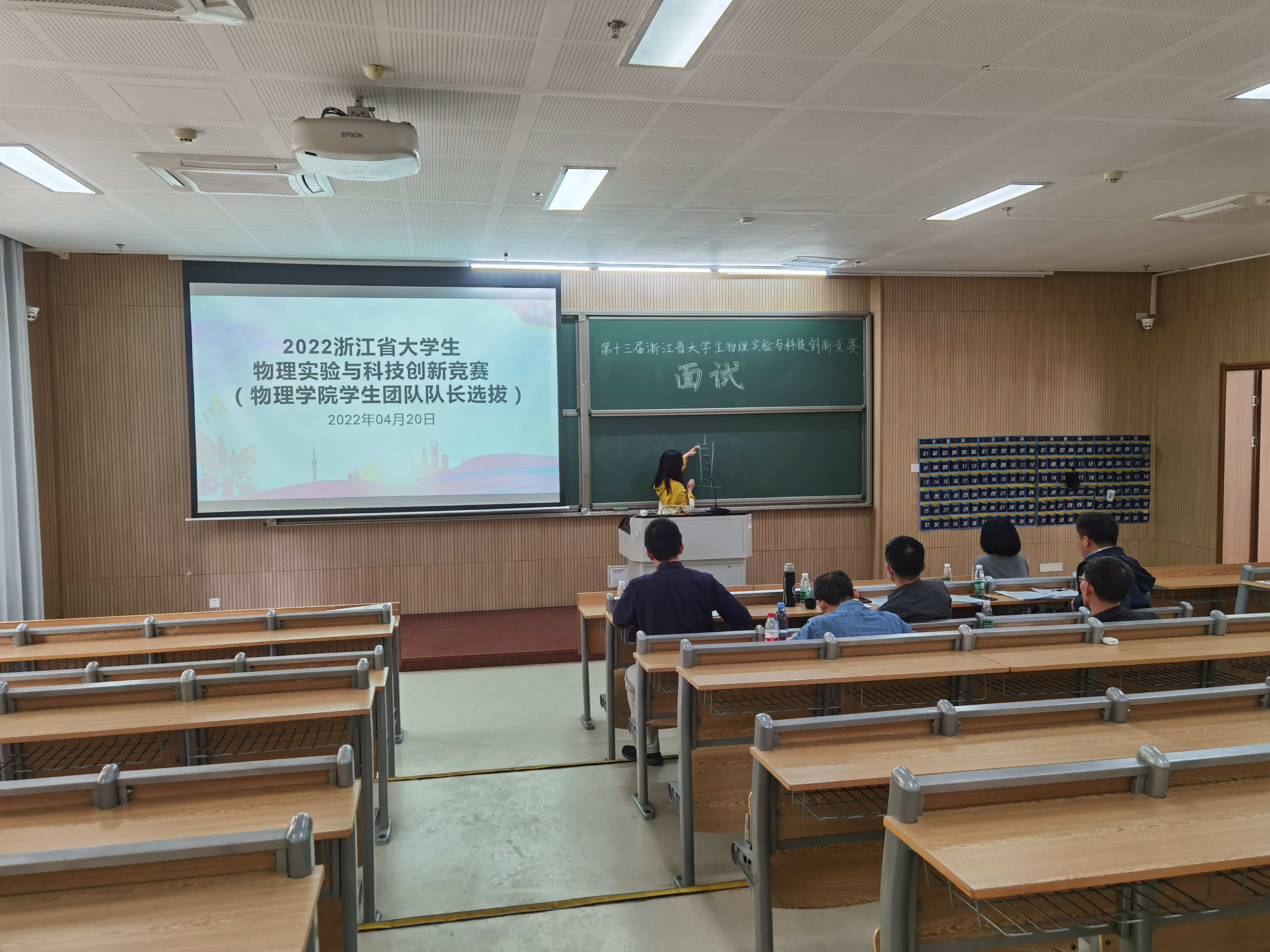 为提升物院学子的科研创新与学术领导力,深入了解同学们对此次竞赛的规划与思考,帮助指导教师更好地指导学生创新实践,色花堂 分别于2022年4月16日、4月20日在下沙校区B楼509教室以及本部勤园7-103教室举办了第十三届浙江省大学生物理实验与科技创新竞赛色花堂 学生团队队长选拔答辩会。