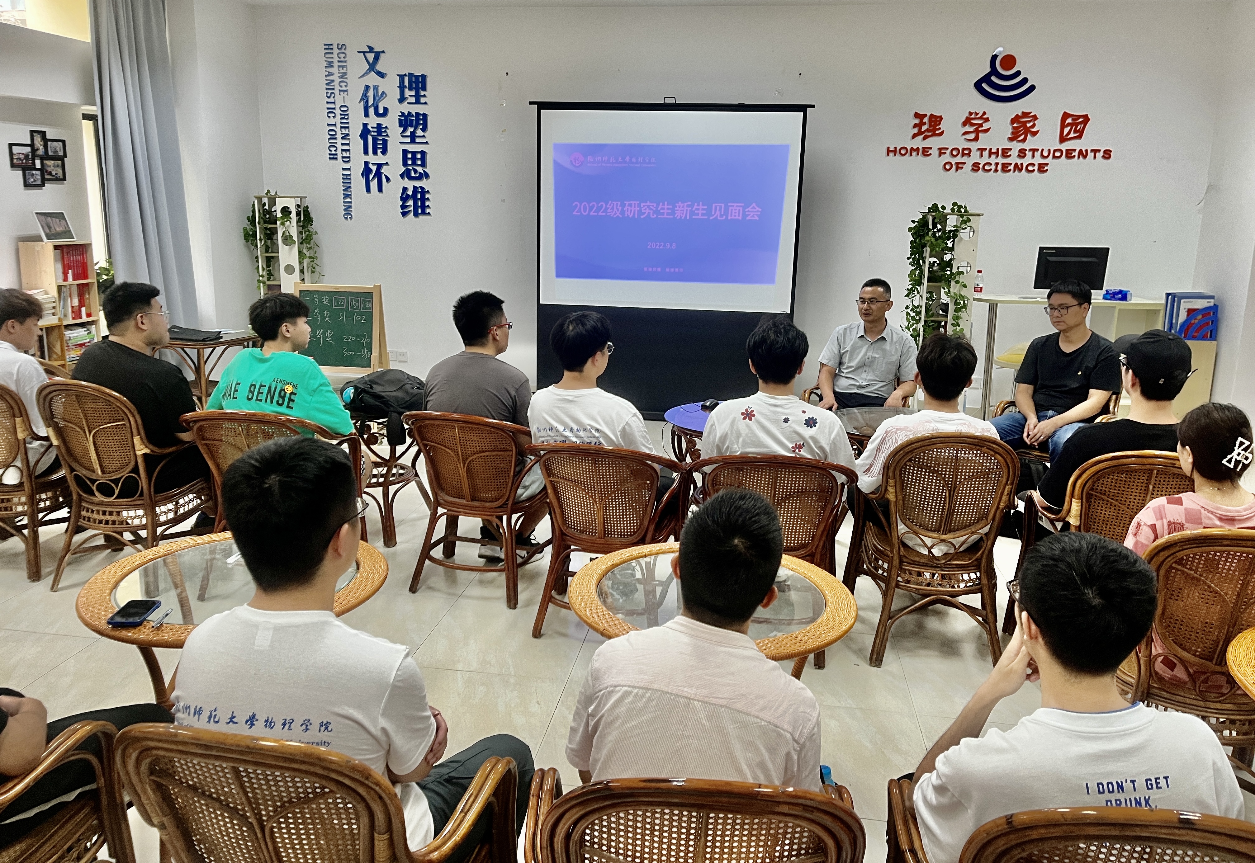 为做好研究生新生入学教育,9月8日下午,色花堂 举行2022级研究生新生见面会。学院党委副书记苏晓松老师、研究生发展中心主任毛宏颖老师出席。见面会由学工办主任兼研究生辅导员柯珂老师主持,22级全体22名研究生参加。