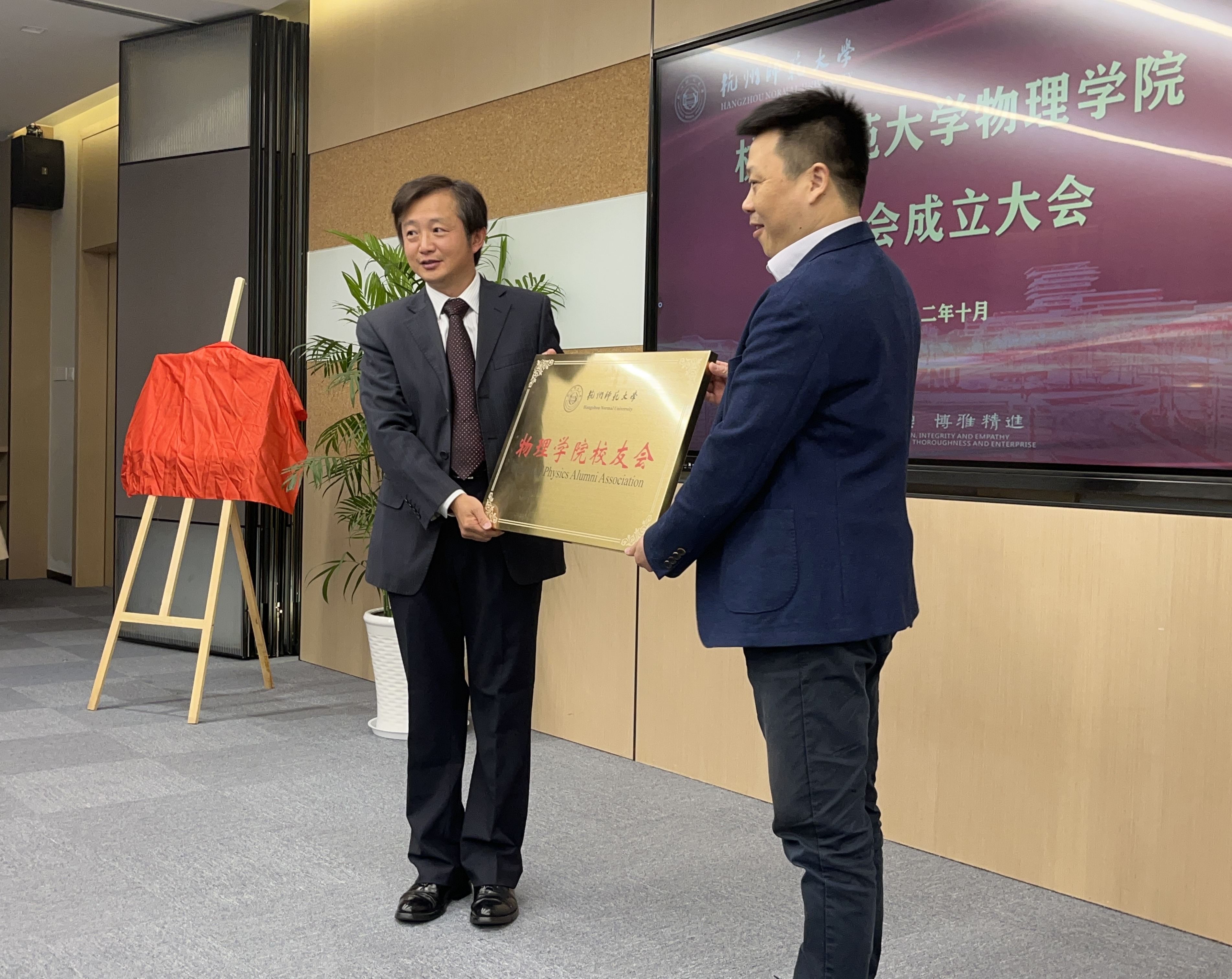 大会通报了色花堂 校友会筹备工作情况。学校校友总会秘书长、校友办主任蔡云飞为色花堂 校友会揭牌和授旗,校友办副主任薛少聪通报了校友会组织机构人选遴选原则。随后,大会审议并通过了色花堂 校友会组织机构人选名单。杰出校友蔡荣根院士担任名誉会长,物理1989届校友、中国物理学会教学委员会委员俞晓鸿担任会长,退休教师杨建宋、李宝兴等5人担任顾问。大会向校友理事会成员颁发了聘书,校友们纷纷表达了对求学时光的怀念与学校培养的感激。俞晓鸿代表校友理事会发言,他表示活跃在各行各业的校友是母校的一笔财富,希望学院校友会成为凝聚校友力量的平台,成为传递校友情感的纽带,为学院人才培养提供有力支持。