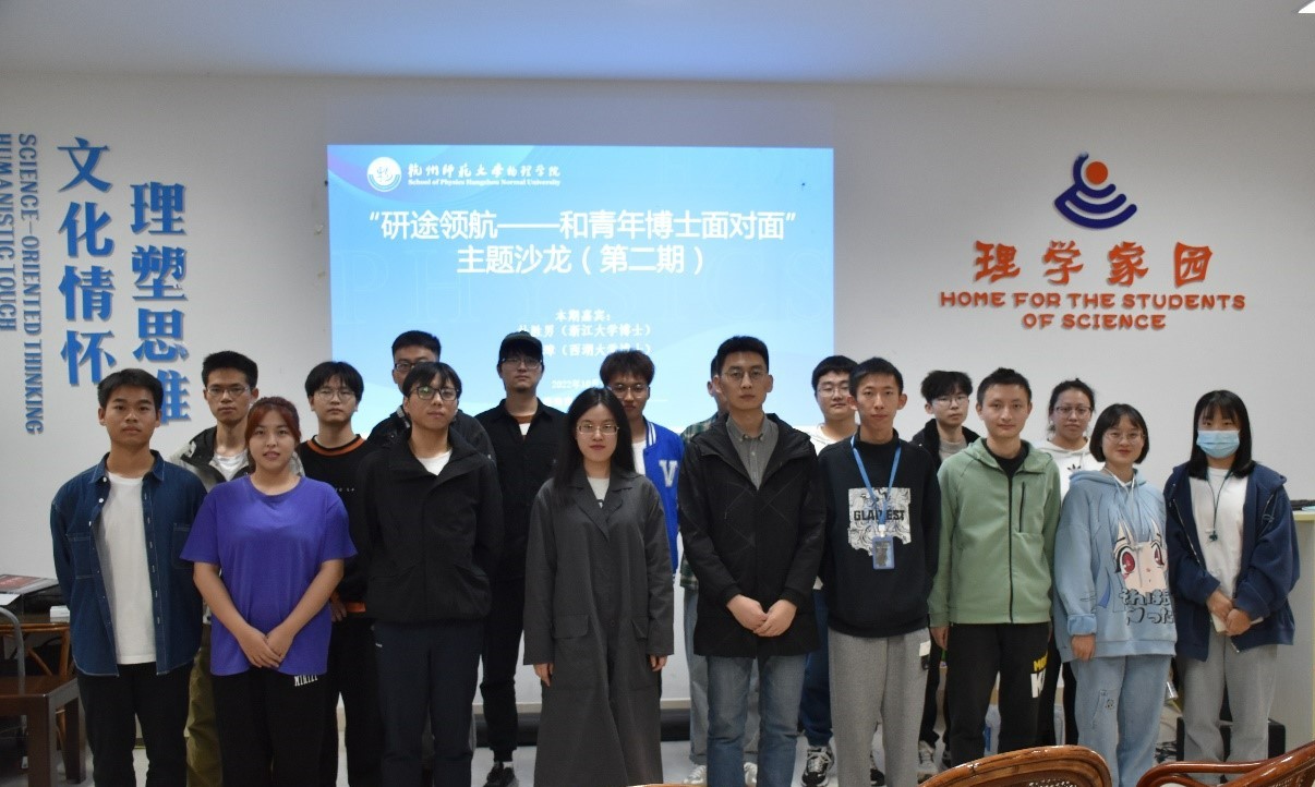 2022年10月30日14:00,由色花堂 研究生会主办的第二期“研途领航——和青年博士面对面”主题沙龙在勤园19号楼理学家园如期开展。本次活动邀请到了色花堂 2020届硕士研究生、现于西湖大学读博的杨武璋和在浙江大学读博的杜胜男主讲。两位校友作为色花堂 的优秀毕业生,与现场同学分享了他们在硕士期间的考博历程和博士期间的学习生活。