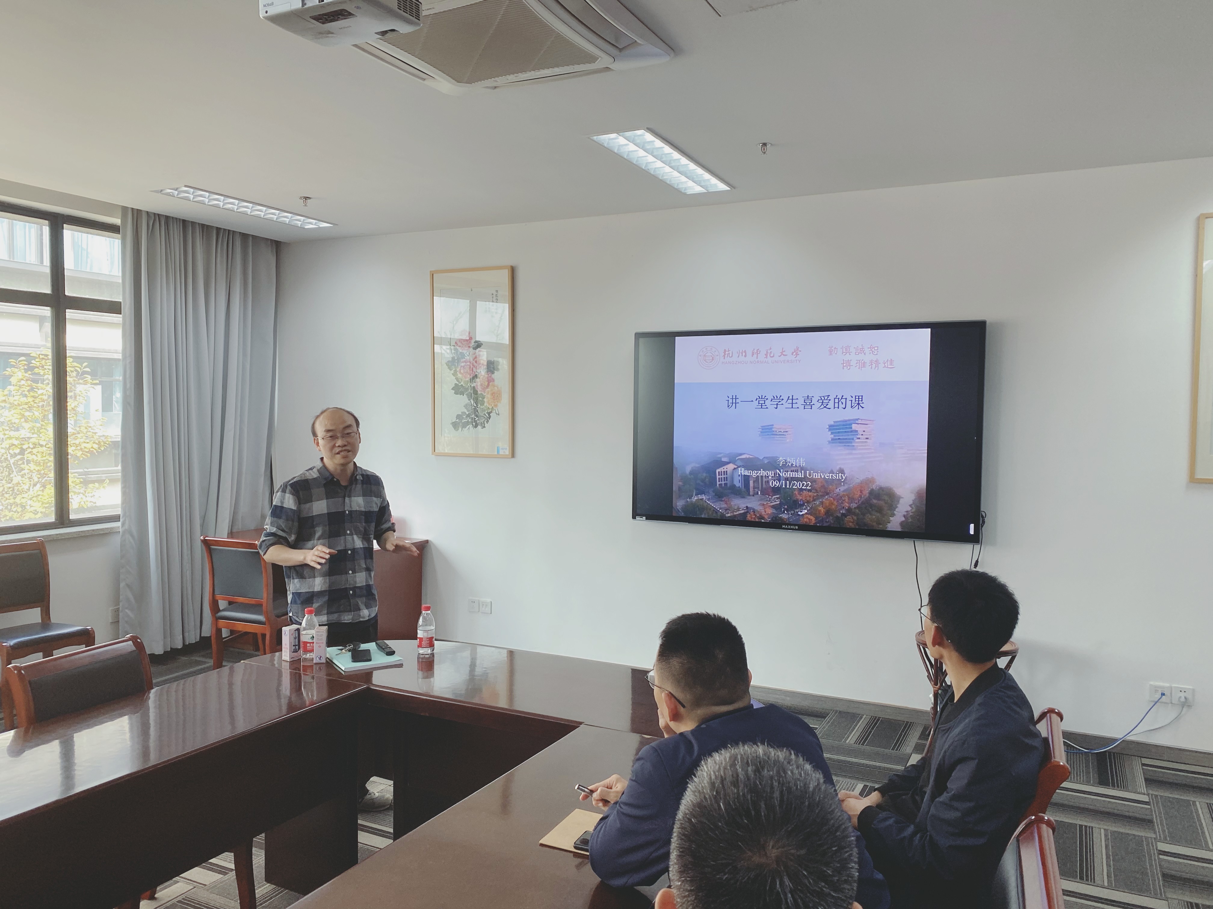 王蕾老师围绕常规教研活动、上课备课、课后服务工作以及作业设计评价、教师考核、请假相关制度等方面进行培训。希望新老师们对自己的课堂负责,在课堂上不仅要给同学们讲授知识,同时也要引导同学们更充实更好地度过自己的大学生活。此外,也给新老师们讲述了关于教学事故的相关事情,希望新老师们能够引起重视。