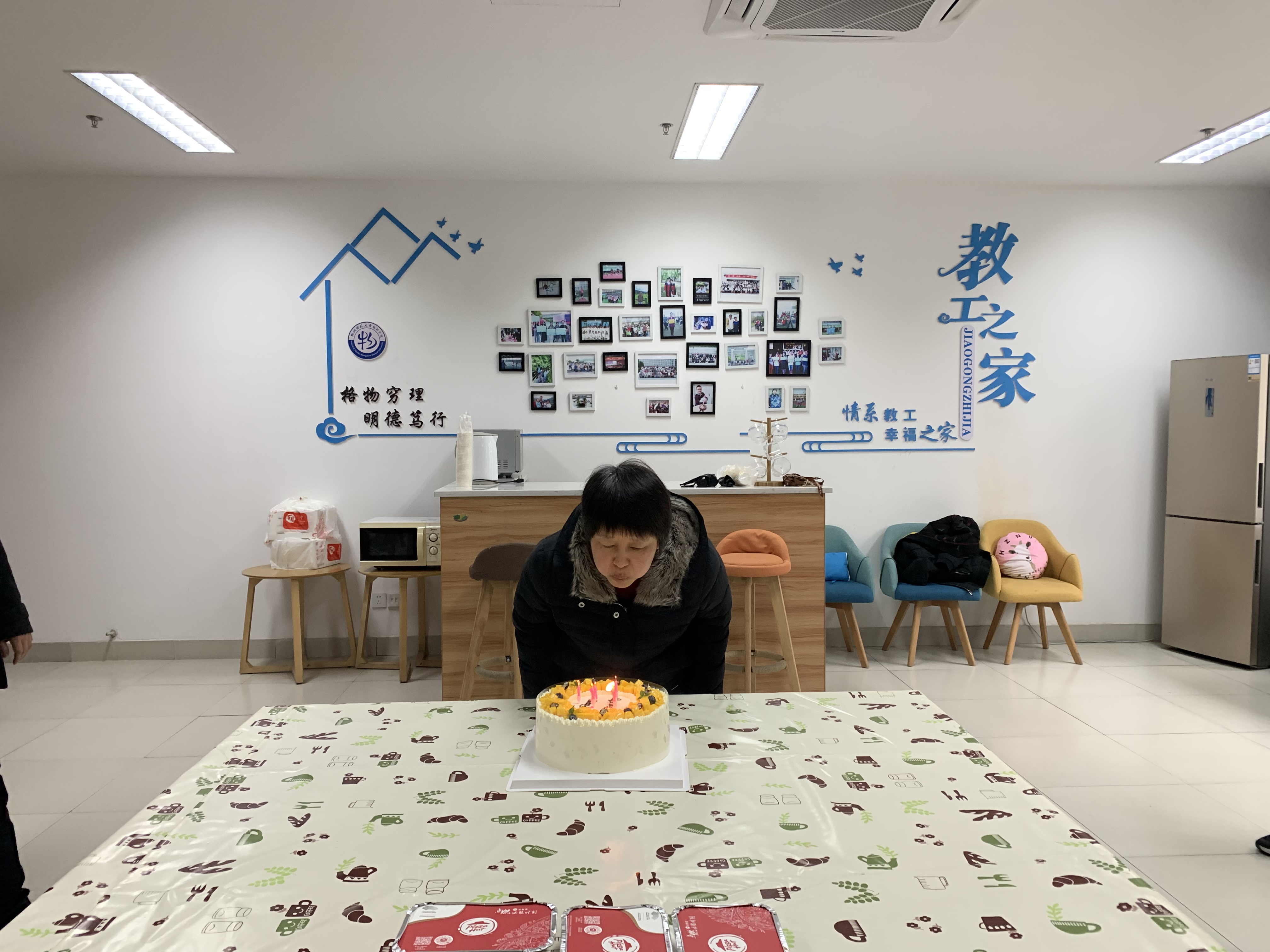 学院党委书记王淑君为此活动致词,“今天学院工会举办集体生日活动,一是为12月寿星庆生,二是大家欢聚一堂,希望大家在繁忙的工作之余,能够放松一下,舒缓下工作节奏。最后祝各位老师们生日快乐,工作顺利,身体健康。我们一起来唱生日歌!”
