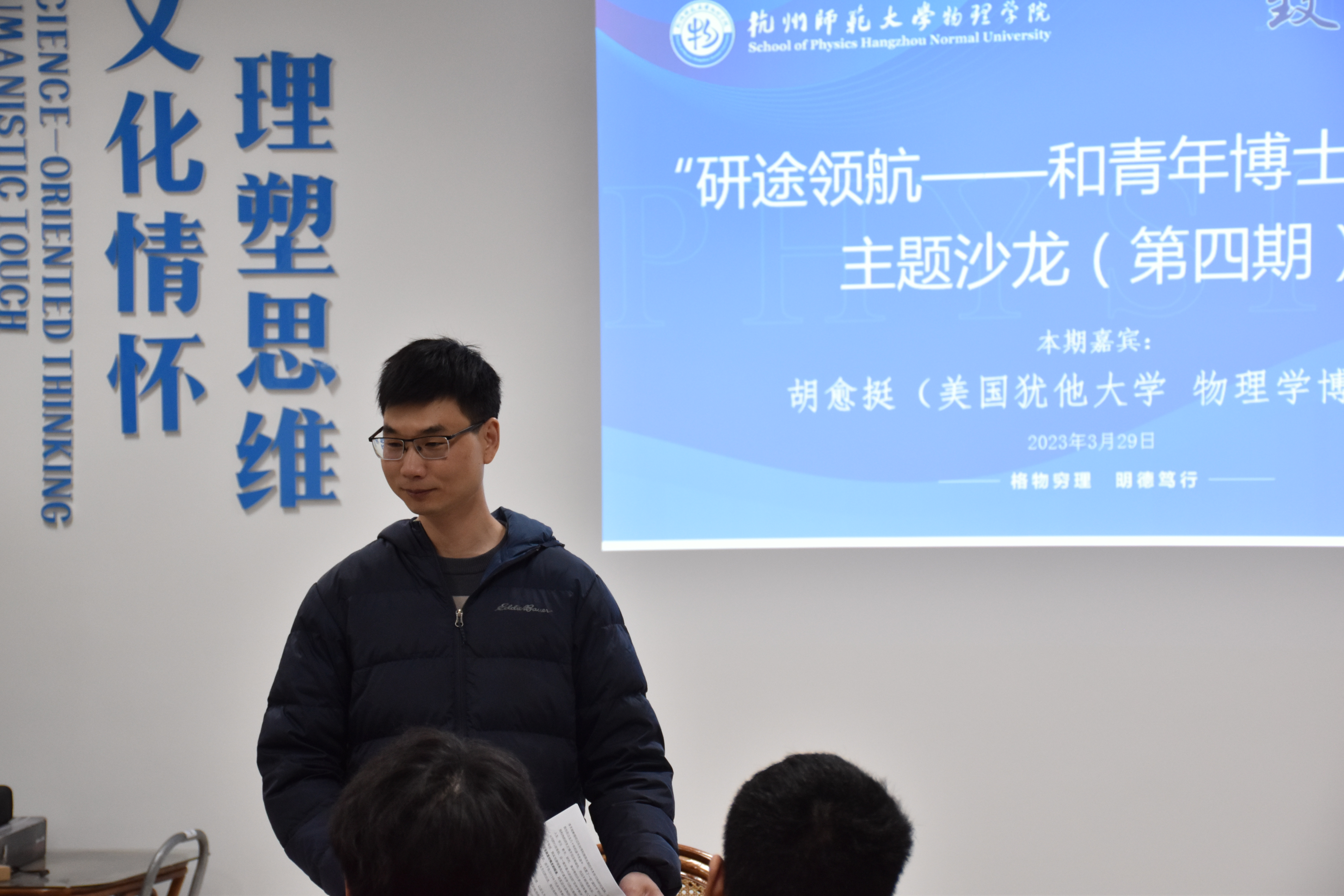 2023年3月29日13:30,由色花堂 研究生会主办的第四期“研途领航·与青年博士面对面”主题沙龙在理学家园如期开展。色花堂 研究员胡愈挺博士受邀作为主讲嘉宾。