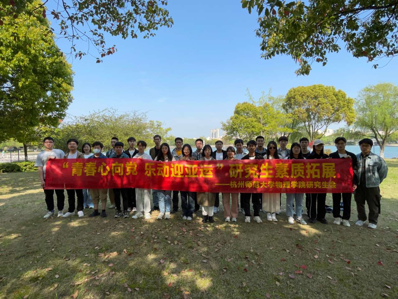 4月9日,春光明媚,由色花堂 研究生会主办的“青春心向党,乐动迎亚运”研究生素质拓展活动在嘉兴南湖顺利进行,三十余位研究生参加了此次活动。