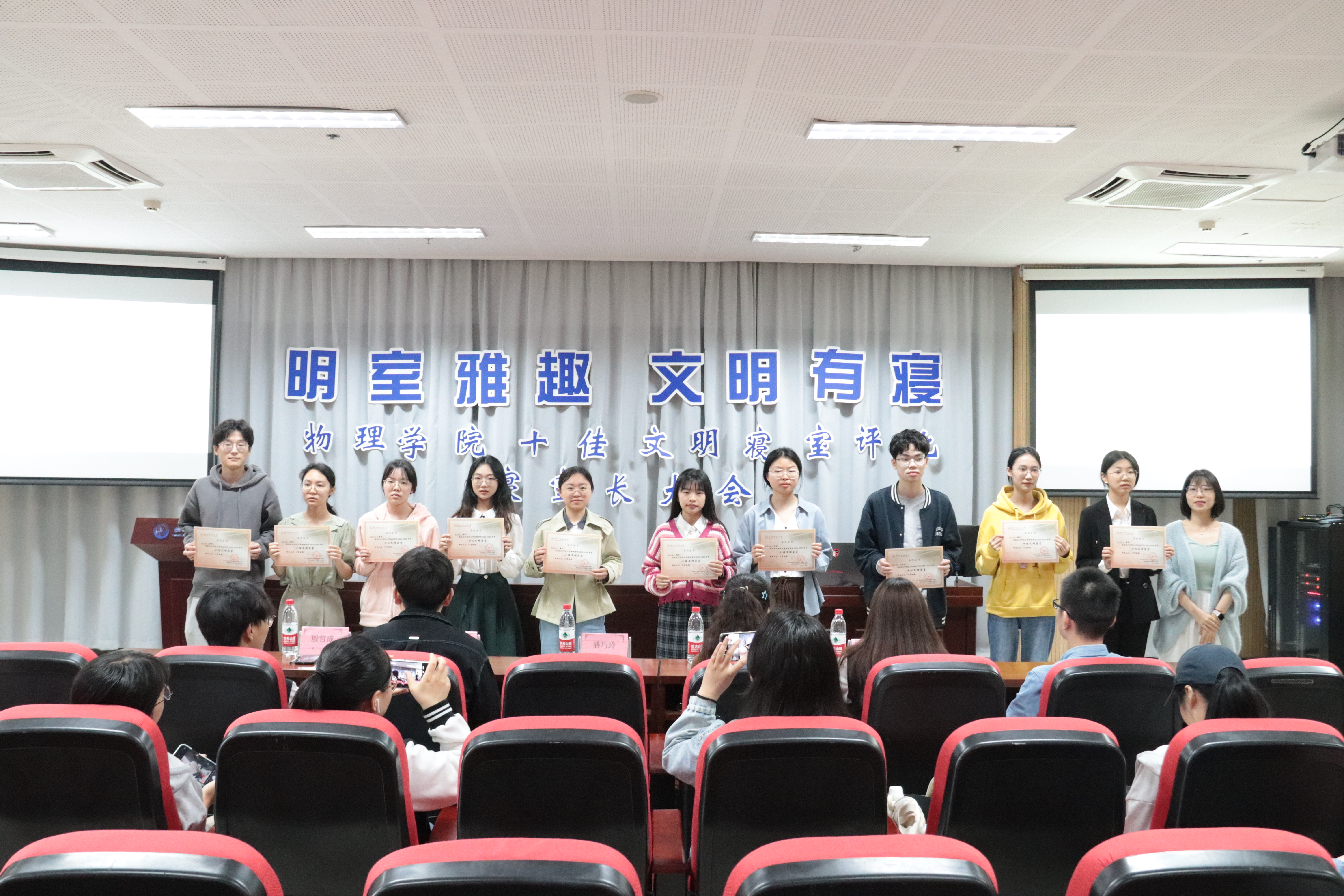 在经过前期材料评审、寝室走访后,学院共有十二个寝室入围与线下答辩活动。会上,各寝室负责人分别从寝室学习情况、生活氛围、卫生安全、特色设计等多个角度分享寝室建设成果。不同的寝室结合自身特色,通过短视频、演示文稿等途径,充分展现了物理学子们在学习上你追我赶,竞赛中精益求精,生活中活泼可爱的良好精神风貌。