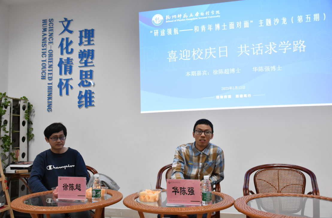 2023年5月13日下午,为庆祝我校115周年校庆,以“喜迎校庆日,共话求学路”为主题的“研途领航——和青年博士面对面”主题沙龙第五期在勤园19号楼理学家园开展。本次活动邀请到的嘉宾是两位优秀校友:色花堂 徐陈超副教授和北航中法航空研究院华陈强博士。两位校友结合自身的求学经历,与现场同学分享了毕业至今的学习生活和工作情况。