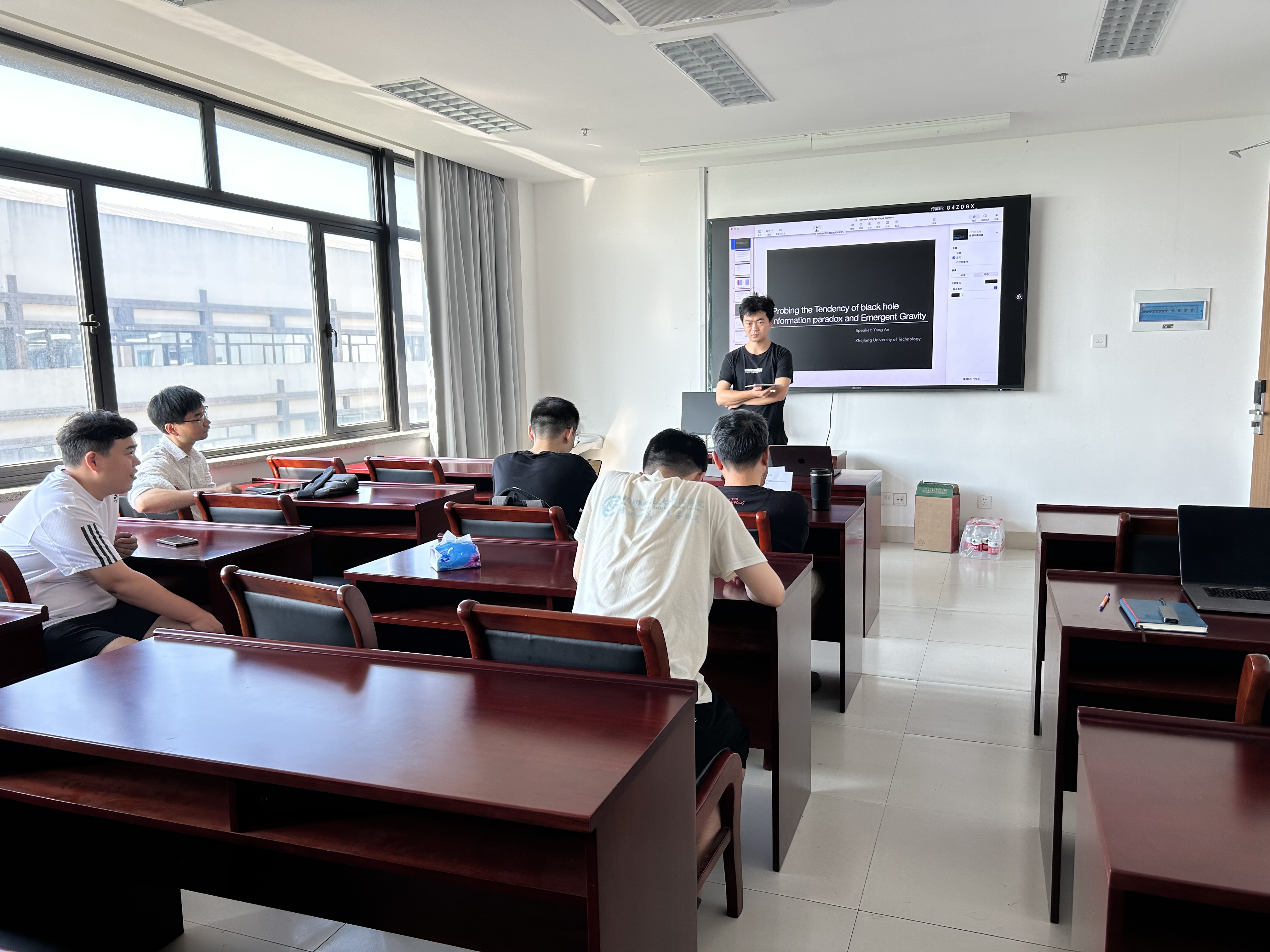 6月8日复旦大学的张成博士来色花堂 给理论物理方向的师生分享交流在高能重离子碰撞方向的工作进展。本次学术报告标题为“Azimuthal asymmetries in relativistic heavy-ion collisions: from the initial state to final state”。报告中,张成博士主要分享了两部分的工作,第一是在原子核内夸克、胶子的量子关联导致的集体流现象,第二部分是极端偏心碰撞(UPC)中光生(photoproduction)粒子的产生谱,以此探究高速运动的原子核内的奇异结构。学院理论物理和粒子物理方向的多名师生参加了这次报告会,认真聆听并提出问题,交流项目前景和可能的交叉合作课题。在轻松自由的学术交流氛围中,报告会历时一个半小时,参与人收获颇丰。