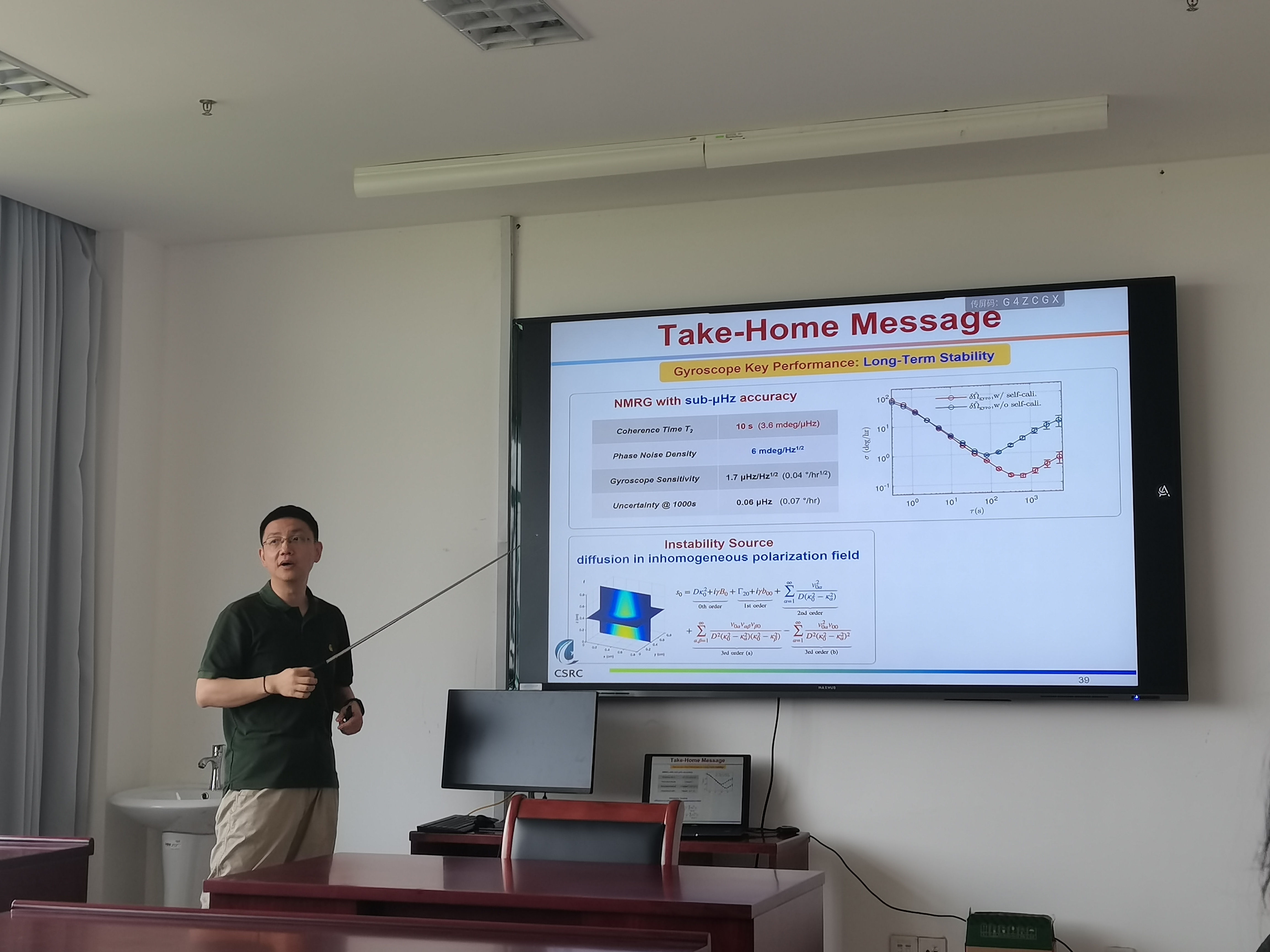 6月12日,北京计算科学研究中心赵楠研究员来色花堂 给光学方向的师生分享交流在原子陀螺仪上的实验进展,本次学术报告标题为“ Navigation by Spins ”。报告中,赵楠研究员分享了用碱金属原子(如Rb原子)的电子自旋和稀有气体原子(如Xe原子)的核自旋来实现核磁共振陀螺仪(NMRG),并且讨论了用于提高NMRG稳定性的几种方法。赵老师风趣幽默,细致入微,讲到关键部分还多次举出实例来引导同学们理解。