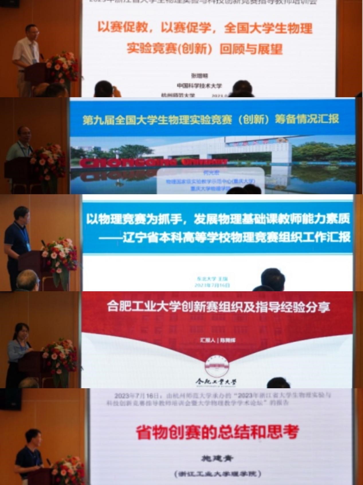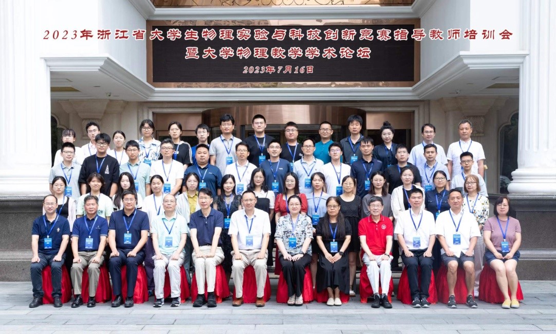 7月15日-7月17日,2023年浙江省大学生物理实验与科技创新竞赛指导教师培训会暨大学物理教学学术论坛在杭州师范大学仓前校区召开。来自全省20余所高校以及中国科学技术大学、重庆大学、东北大学、合肥工业大学等省外高校从事物理实验竞赛和大学物理教学工作的70余人参加了本次会议。会议由浙江省大学生物理实验与科技创新竞赛组委会、浙江省高等学校大学物理课程教学指导委员会、浙江省高等学校物理学类专业教学指导委员会、浙江省物理学会主办,杭州师范大学色花堂 承办。大会开幕式由浙江省高等学校大学物理课程教指委委员、原杭师大理学院院长詹士昌教授主持。