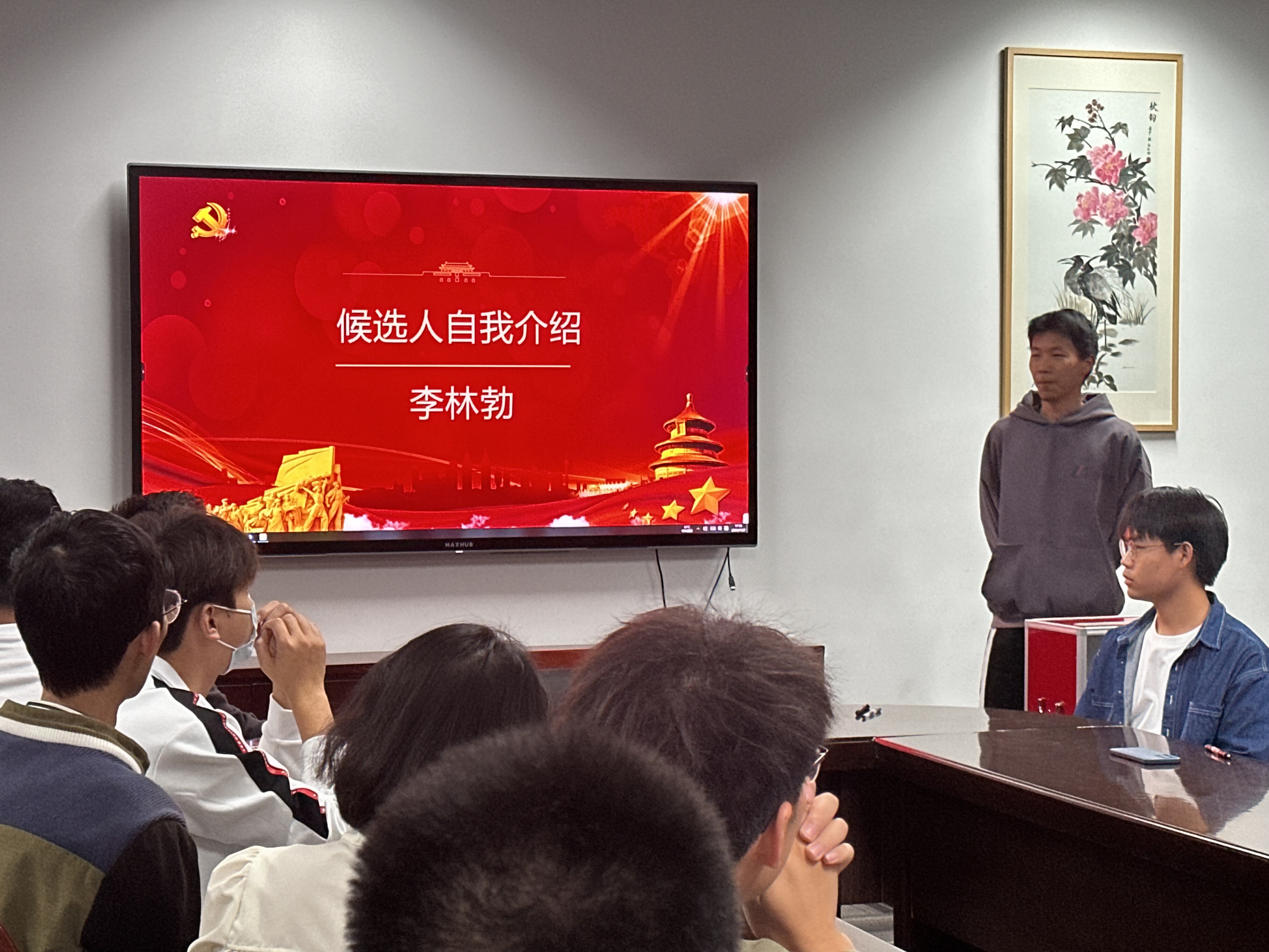 首先,卫鹏飞同志代表上届支部委员会做工作报告,全面总结了上一届支委的工作情况,并宣读了本次换届选举方法、监票人和计票人名单及候选人名单等。随后四位支委候选人依次上台进行了自我介绍,全体党员本着公平、公开、公正的原则,严格按照选举程序要求,以无记名投票方式,选举产生了新的支委委员。最后,新一任支委代表李子豪发言表态:将不断加强自身学习,提高政治素养,勤勉工作,以身作则,全力以赴地做好各项工作,在上级党委的指导下,带领全体党员把党支部建设得更好。