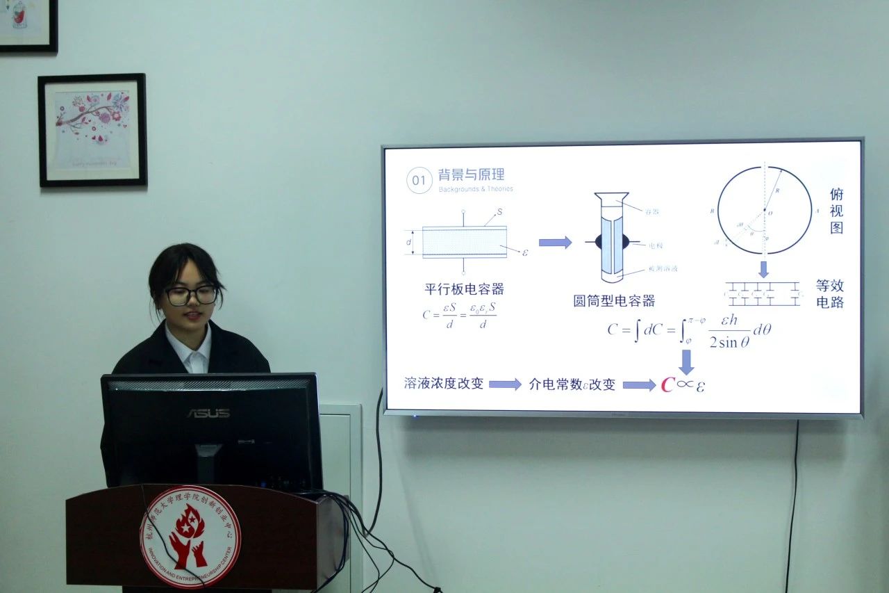 祁予扬同学代表团队从原理背景、系统设计、系统调试与数据测量等方面出发,展示了他们小组所研究的一种基于LabVIEW的电容式透明液体浓度测量系统。在展示过程中,他们通过详细的图文以及数据对比,充分展示了他们实验装置的精确性与稳定性,并在结尾对其推广应用方向进行了简单阐述,展现了他们对该项目的深刻研究与考量。