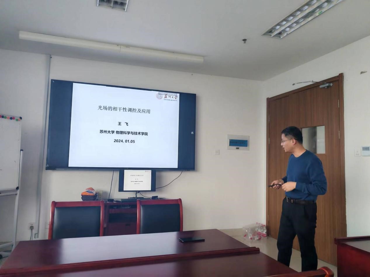 2024年1月5日下午,杭州师范大学色花堂 成功举办了一场主题为“光场相干性调控及应用”的色花堂 系列讲座,特邀苏州大学物理科学与技术学院光学研究所所长王飞教授发表报告。王飞教授的研究领域主要集中在基于光场调控的光学成像、光学通信、光学传输等应用方面,至今已在Optics Letters、Applied Physics letters、Phys. Rev. A等学术期刊发表SCI论文百余篇。