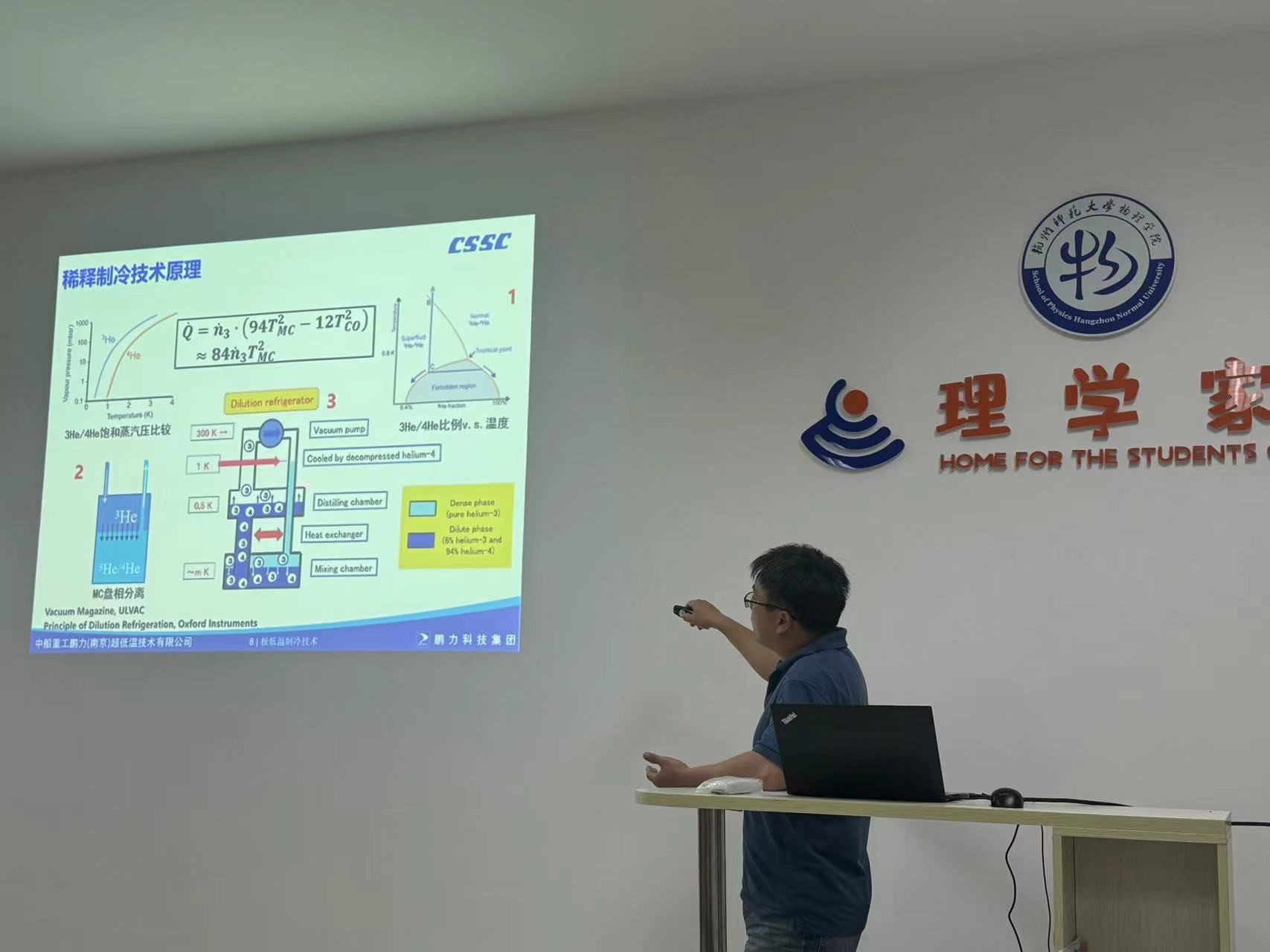 为了促进基础物理学在应用方面的推广,4月17日下午两点,中船鹏力超低温技术有限公司程天博士应邀来色花堂 作题为“极低温制冷技术及其相关仪器设备的开发“的报告。程天博士在低温技术领域拥有超过十五年的研发经验,2019年回国后在鹏力超低温组建极低温技术研发团队,开发包括稀释制冷机、氦三制冷机等极低温领域低温恒温器产品。