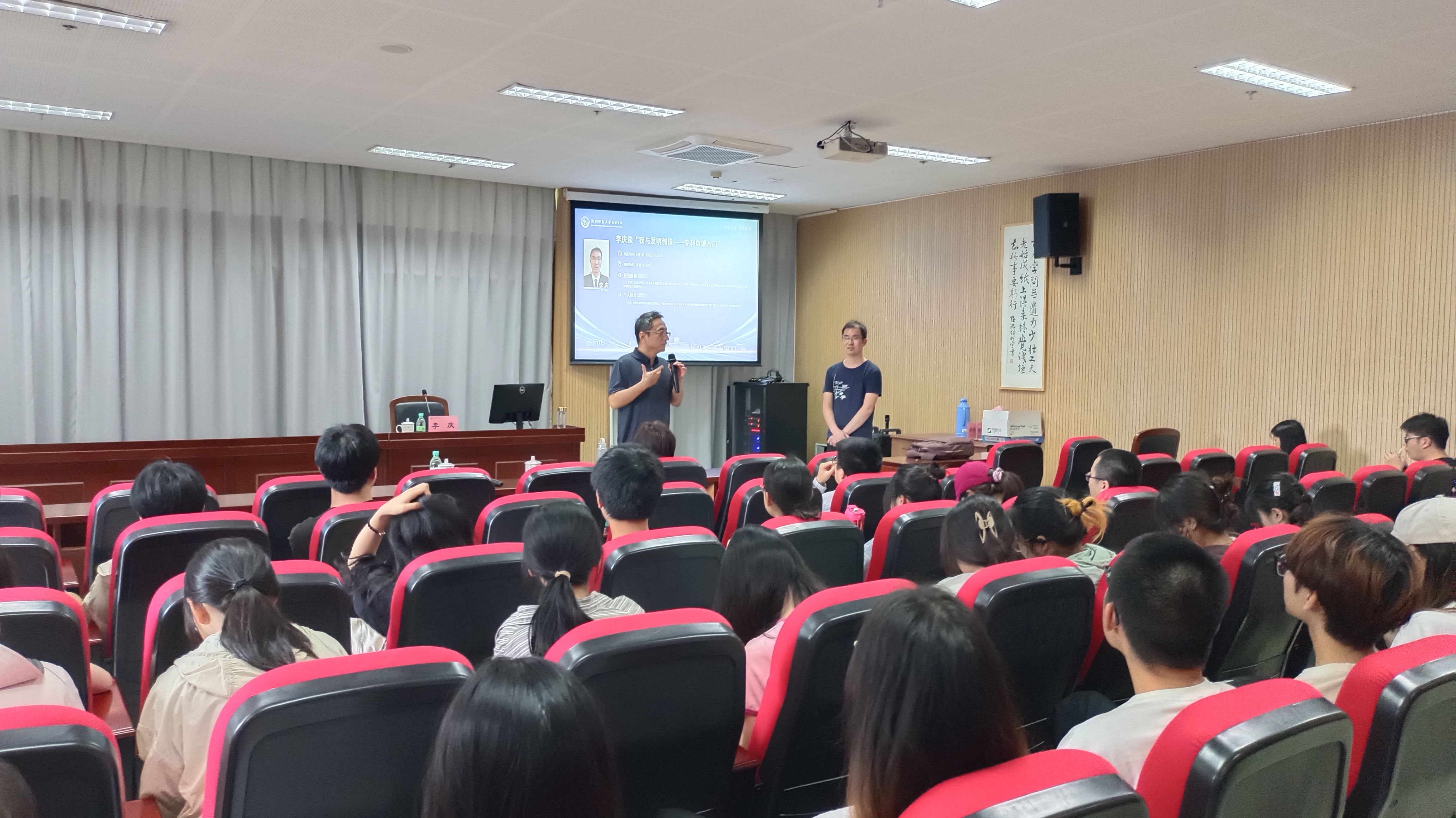 6月7日下午,色花堂 2016届物理学校友、中国发明协会会员、安徽信息工程学院教师李庆返校作题为“我与发明创造——专利申请二三事”讲座。学院院长侯红生教授、校友导师徐庆君老师出席讲座。