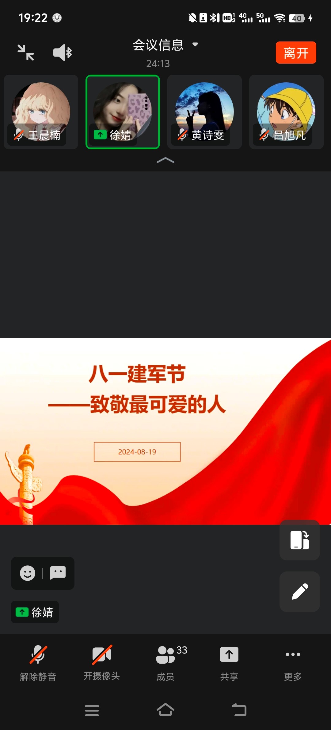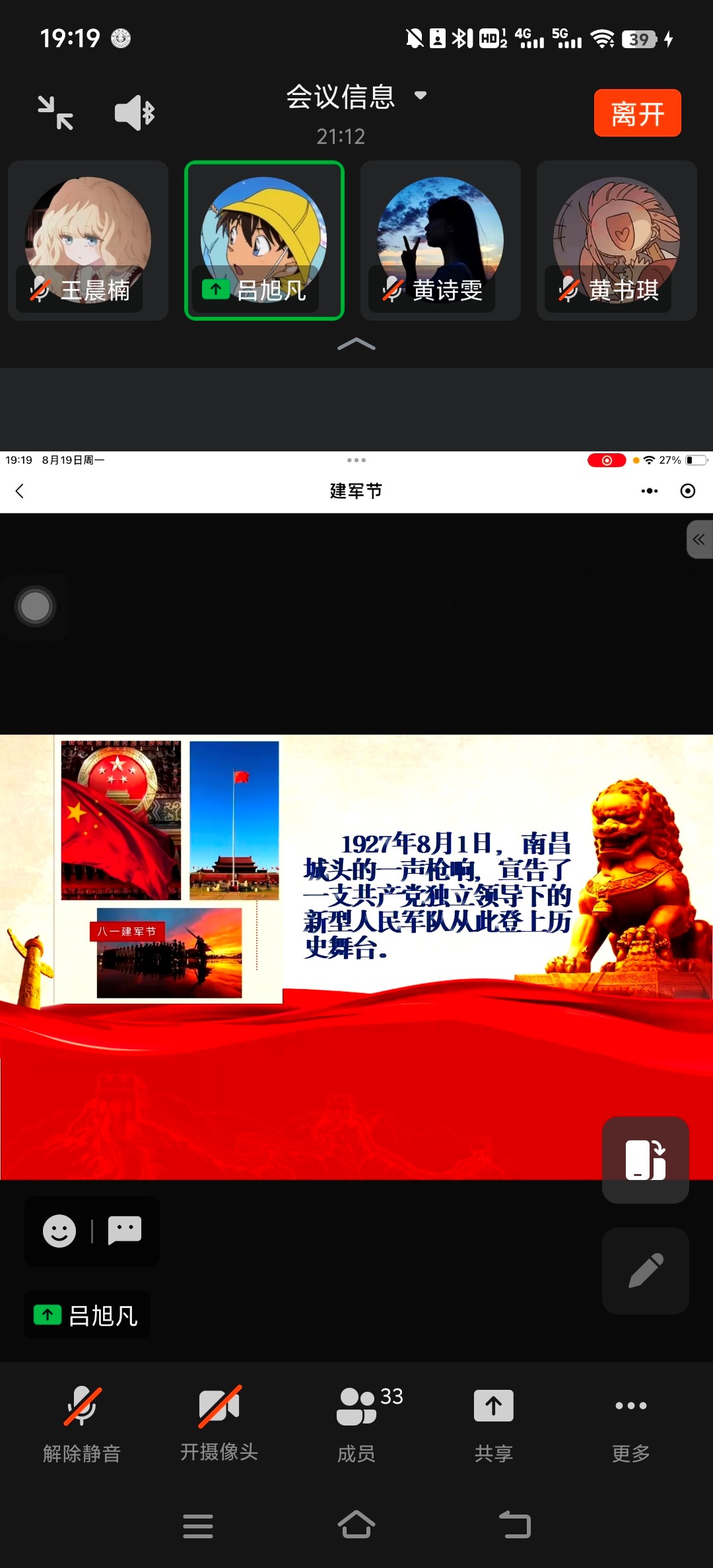 8月19日晚,学院学生第二党支部开展八月党日活动,支部党员参加会议。本次党日活动,主要由吕旭凡和徐婧两位支部党员以“八一建军节,致敬最可爱的人”为主题分享了她们的学习心得。